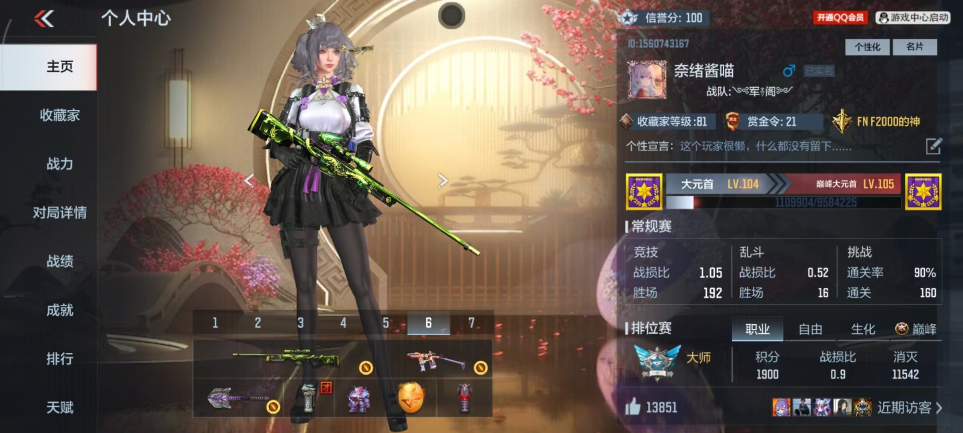 - PX_2100852-?/枪械4/装备116/战备70/王牌印记3/热力值31976/五级AKM-绿萝繁花/五级SCAR-L-锦绣绵绵/六级GROZA-旋转彩虹/五级Kar98K-巳巳如意/幻影/圣堂之誓/套装-龟仙人/套装-巳巳如意/套装-燕燕于飞/套装-鱼渊荷华/AKM-绿萝繁花/SCAR-L-锦绣绵绵/GROZA-旋转彩虹/Kar98K-巳巳如意/AKM-环太平洋/AKM-破晓战魂/AKM-
