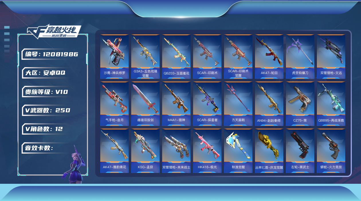 - 穿越火线:枪战王者/QQ/安卓QQ区/全区全服