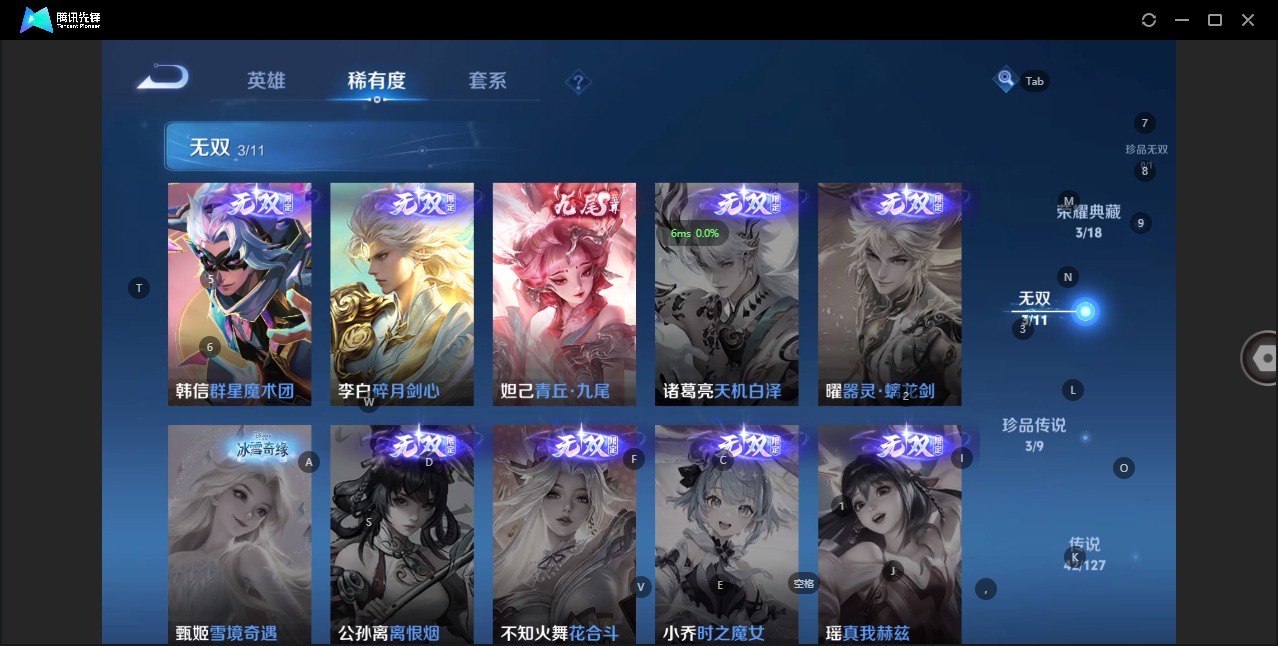 - [12136263]V6 8传说 124英雄 129皮肤 可修改实名 优质装备:云鹰飞将(小将军),黄金白羊座,一念神魔,乞巧织情,游龙清影(小青龙),淬星耀世,超时空战士-狄仁杰 珍宝阁皮:优雅恋人,蔷薇恋人 限定皮:逐霄战戟,鸣野蒿,至尊宝 史诗皮:蒙犽顽岩魄,特工魅影,百解令(蒙犽),龙骑士(小龙虾),末日机甲-吕布,摇滚巨星,水果甜心,暗隐猎兽者,幽灵船长,地狱岩魂,乘风破浪,逐浪之夏,水晶猎龙者,箭羽风息,金属风暴,圣诞恋歌,鹰眼统帅,魅力维加斯,未来纪元-赵云