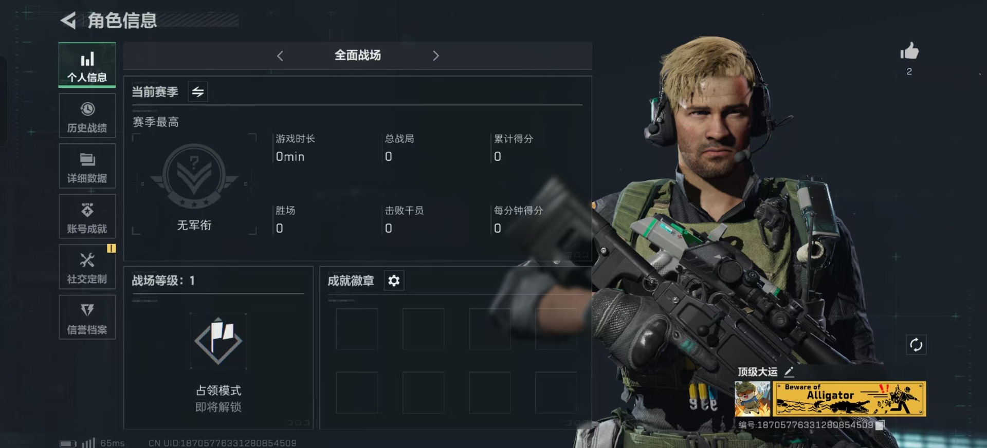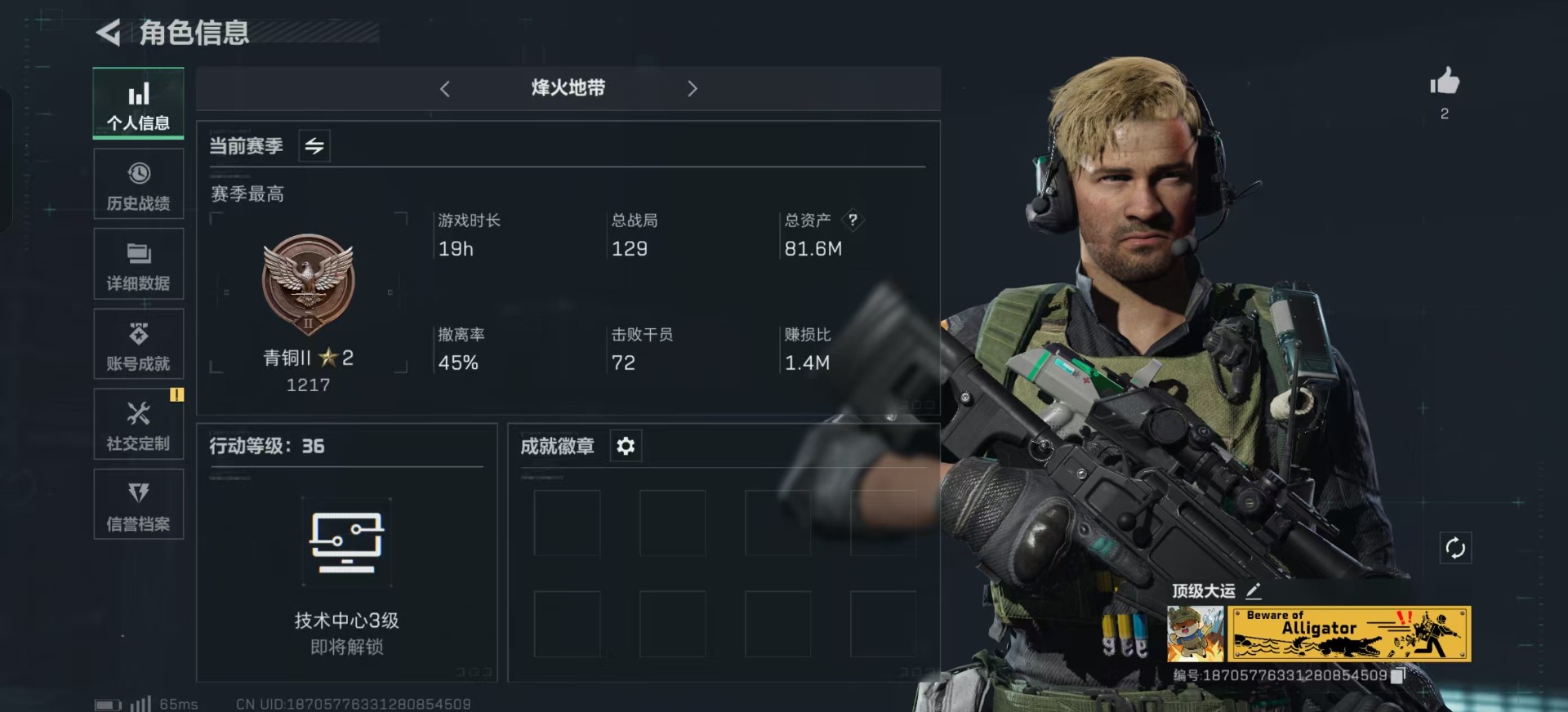 [12083046]总资产:81.6M 5传说枪械 哈夫币:10.968K 可二次 可修改实名 烽火地带段位:青铜 全面战场段位:无段位 传说武器皮肤:复合弓-黑-天际线,AWM狙击步枪-捞点薯条,腾龙突击步枪-捞点薯条,93R-捞点薯条,勇士冲锋枪-能天使-午夜邮差 史诗武器皮肤:SV-98狙击步枪-林中猎手,M250通用机枪-囚徒