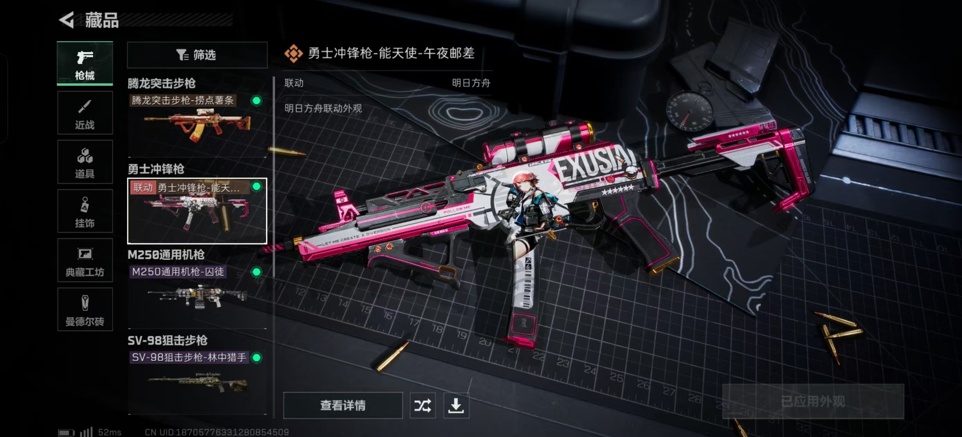 - [12042020]【特价急出/详情看图】:安卓 手Q-2特效枪-1载具-1.6w热力值-1王牌印记-41套装-52枪皮【粉色载具】:阿斯顿马丁DBS(红)【粉色枪皮等级】:Kar98K-巳巳如意(五级),M249-蓝莓炮弹(三级)