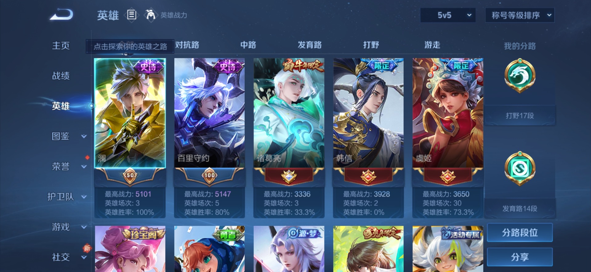- PX_2059675-实名: 可修改 贵族等级: V6 英雄数: 123 皮肤数: 121 传说皮: 绛天战甲,地狱火,典韦战鼓燎原 限定皮: 傲雪梅枪,匿光决锋者,五谷丰年,鸣野蒿,逐霄战戟