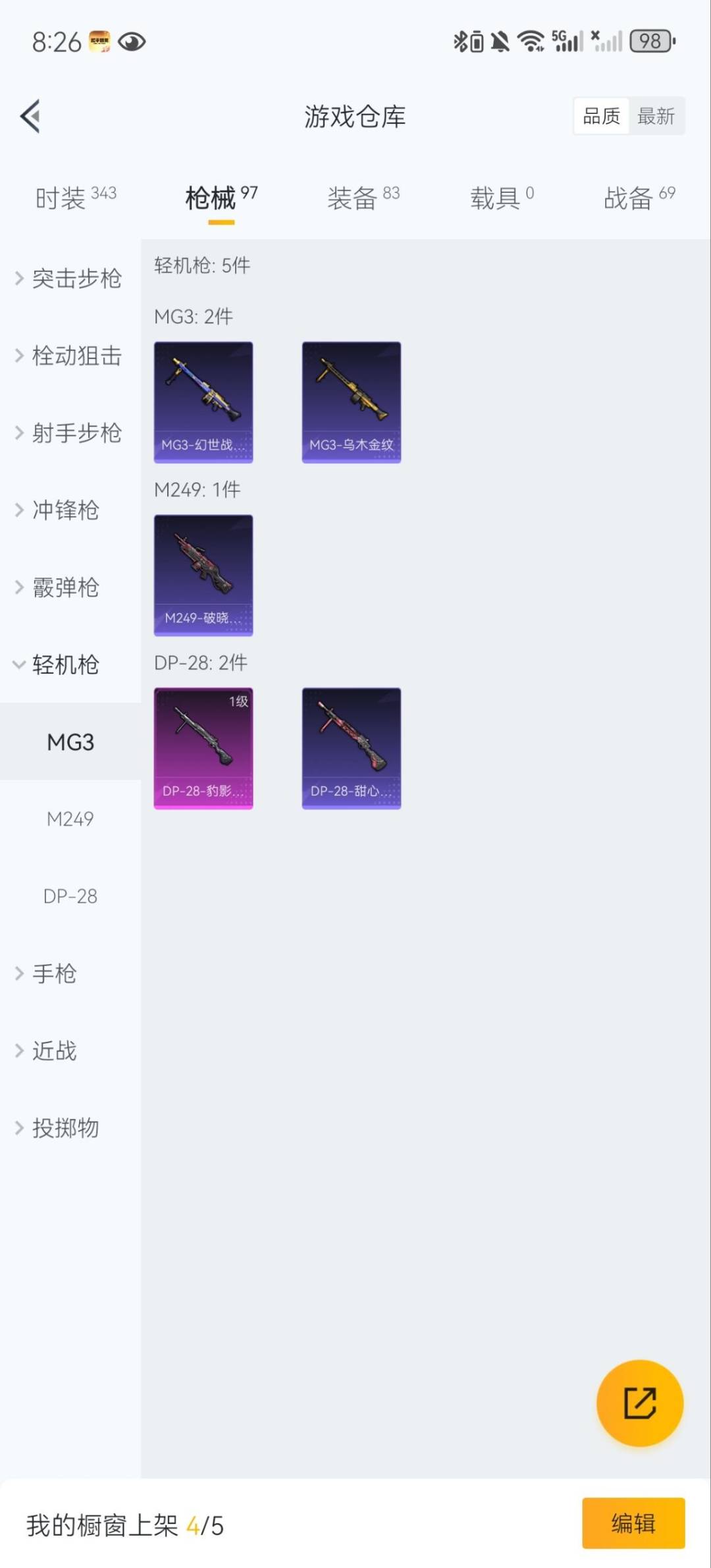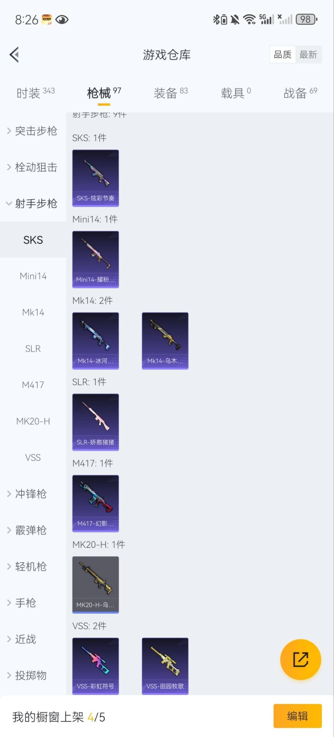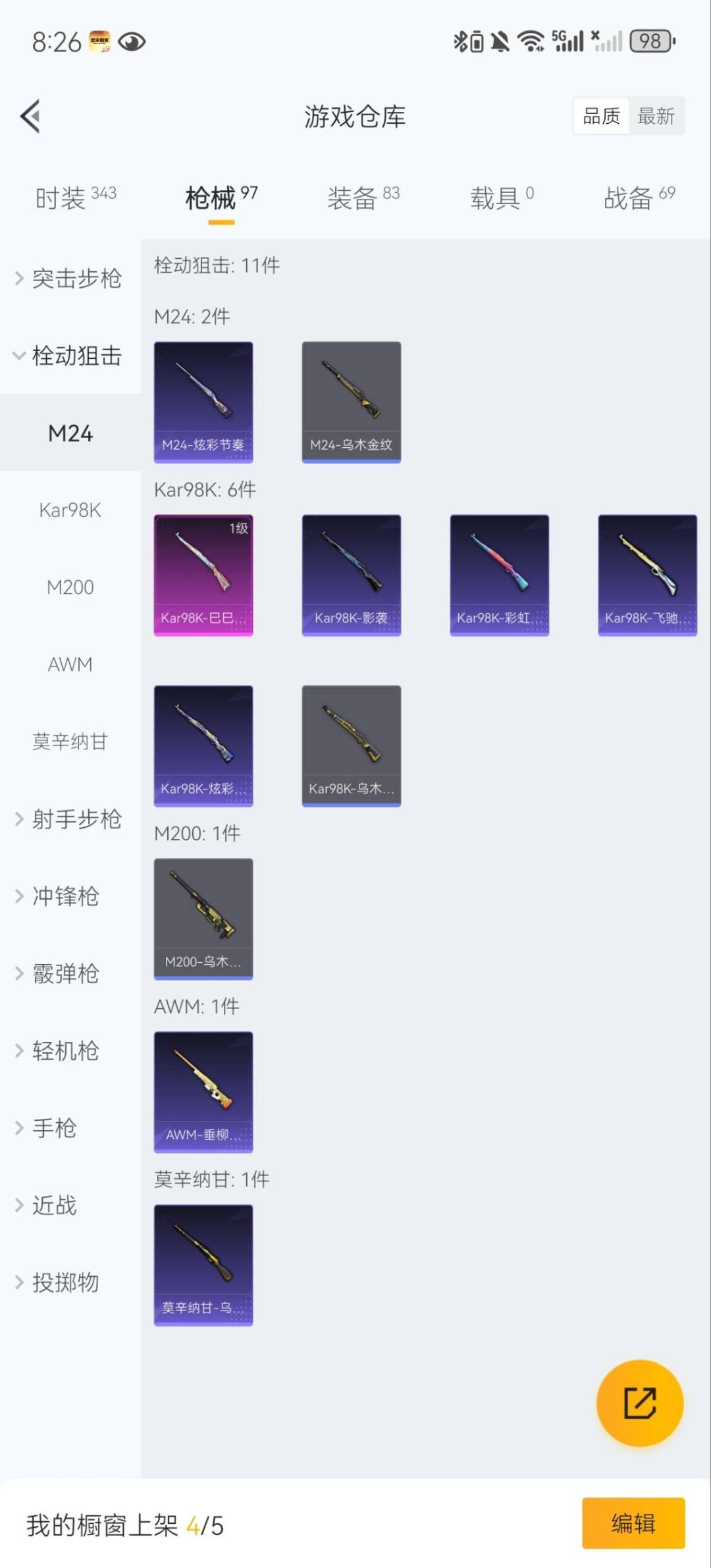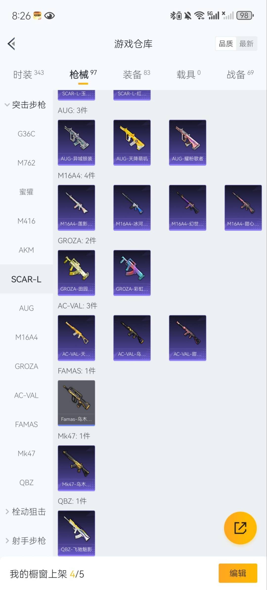 - PX_979624-(可二次实名) 【公主素材号】螳螂-浪漫天命-满级M249-彩虹甜喵-发光眼镜-4淘汰盒子-粉熊背包-安卓Q-超级王牌1星-46111热力值 7王牌印记 140套装 115枪皮 【2载具】 路特斯EL灰色 萌兔起飞僚机 【1稀有】 SCAR-L-粉色回忆 【14粉装】 紫螳螂 梦幻火箭 天使彩虹糖 甜心巧克力 缤纷油彩 放客神游 筑梦精灵 甜蜜誓约 冰川幽秘 彩虹甜喵 蜜桃特工