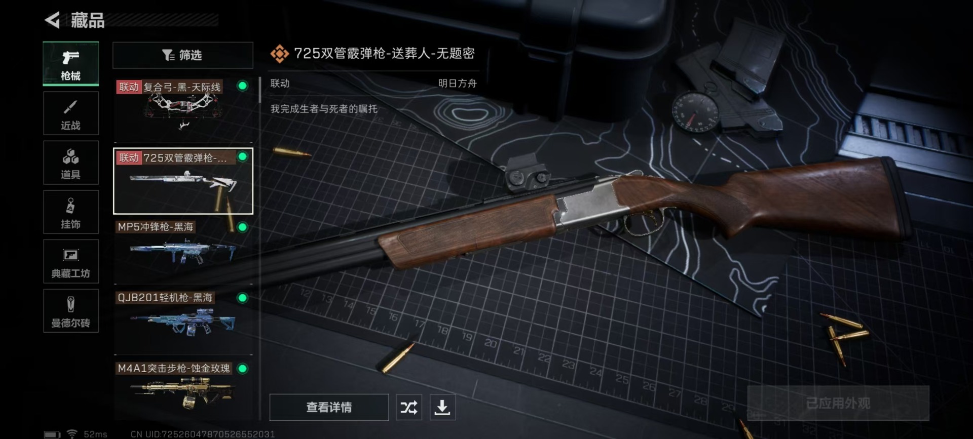 - [11632533]总资产:5.4M 4干员外观 22传说枪械 哈夫币:442.079K 可二次 可修改实名 优质装备:K416突击步枪-命运(典藏) 烽火地带段位:三角洲巅峰 全面战场段位:列兵 传说武器皮肤:腾龙突击步枪-蛟龙特战队,AS Val突击步枪-蛇年祥瑞,SR-25射手步枪-水墨云图,SCAR-H战斗步枪-水墨云图,SCAR-H战斗步枪-铁艺苍穹,AK-12突击步枪-夜鹰,G18-飞虎,SMG45冲锋枪-骑士,复合弓-黑-天际线,勇士冲锋枪-能天使-午夜邮差,725双管霰弹枪-送葬人-无题密令,K437突击步枪-北极星,腾龙突击步枪-黎明警戒,MP5冲锋枪-黑海,AUG突击步枪-游乐场,M870霰弹枪-游乐场,M250通用机枪-游乐场,QJB201轻机枪-黑海,M7战斗步枪-维京,M7战斗步枪-怜悯,M4A1突击步枪-蚀金玫瑰 史诗武器皮肤:M700狙击步枪-蝮蛇,SR-25射手步枪-尖端治疗,PKM通用机枪-荒野求生,AS Val突击步枪-尖端治疗,M700狙击步枪-守夜人,SG552突击步枪-尖端治疗,Ash-12战斗步枪-守夜人,MP5冲锋枪-深海恐惧,SR-3M紧凑突击步枪-荒野求生,勇士冲锋枪-深海恐惧,SG552突击步枪-深海恐惧,AKM突击步枪-林中猎手,M16A4突击步枪-竞赛选手,PKM通用机枪-守夜人,SVD狙击步枪-荒野求生,M14射手步枪-禁卫,M1014霰弹枪-林中猎手,SV-98狙击步枪-林中猎手,PSG-1射手步枪-无垢,AS Val突击步枪-典狱官,M250通用机枪-囚徒,SCAR-H战斗步枪-囚徒,腾龙突击步枪-无垢,MP7冲锋枪-无垢,QBZ95-1突击步枪-曙光,沙漠之鹰-曙光,SVD狙击步枪-阿萨拉工艺,PKM通用机枪-英雄,M14射手步枪-黑鹰坠落,M700狙击步枪-竞技风 干员外观:红狼-蚀金玫瑰,骇爪-水墨云图,威龙-飞虎,蜂医-送葬人·无题密令(S5)