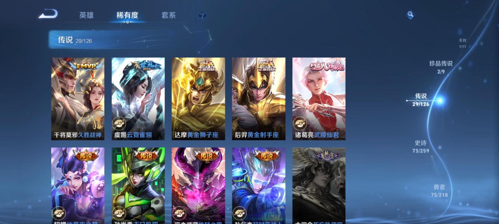- 安卓QQ 可二次 贵族7 段位永恒钻石IV 皮肤价值150508 英雄数量116 皮肤数量159 荣耀水晶2 传说皮肤21 珍品0 限定皮肤5 无双皮肤0 内测2 赛季皮肤10 史诗皮肤23 普通皮肤15 其他197
