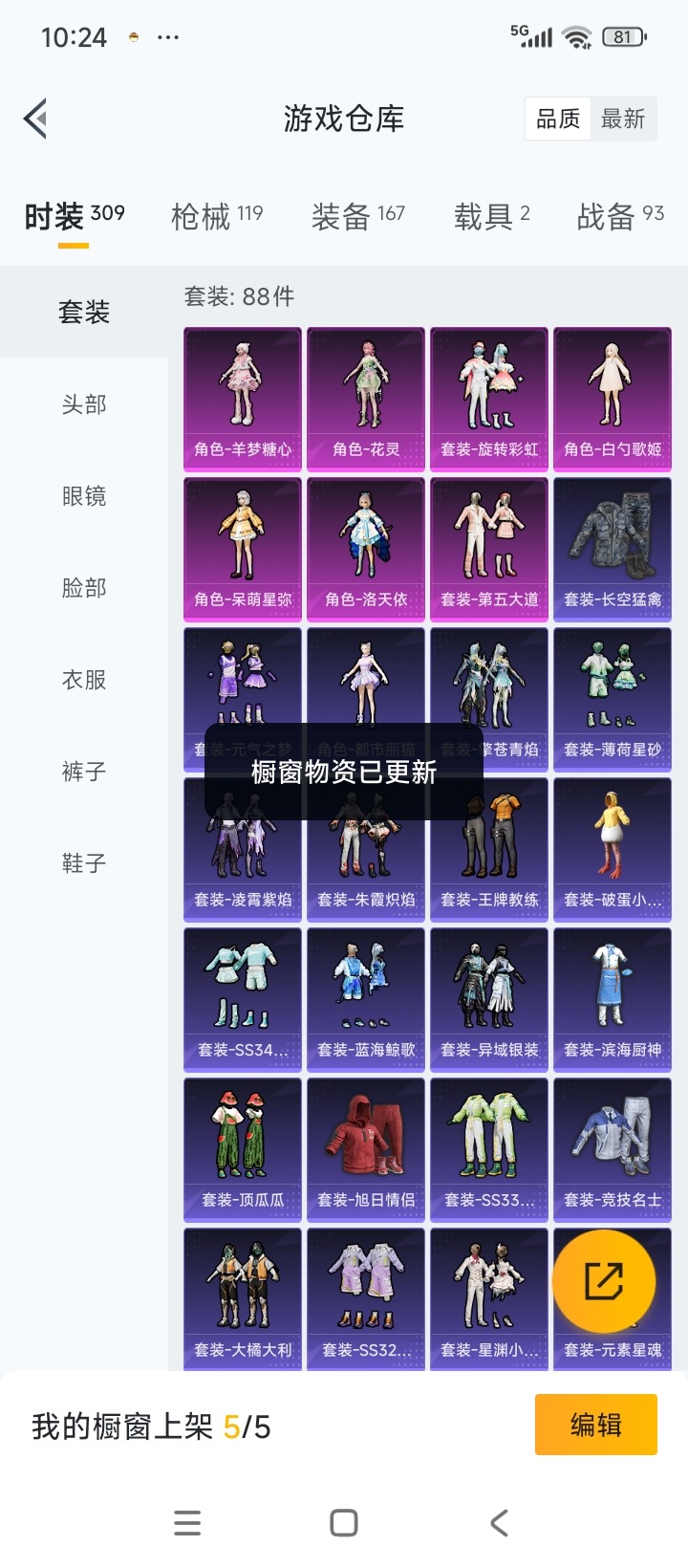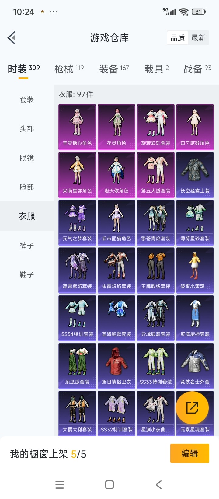 [12084308]7粉装 4特效枪 2载具 12印记 可二次 可修改实名 优质装备:洛天依,Vector飒粉甜心,七级Vector-飒粉甜心,羊梦糖心,花灵,Kar98K-巳巳如意 热门装扮:旋转彩虹,第五大道,呆萌星弥,白勺歌姬 稀有枪皮:DP-28-豹影疾电 五级特效枪:五级Kar98K-巳巳如意,五级DP-28-豹影疾电 紫色装扮:SS22特训,SS23特训,SS21特训,SS31特训套装,旭日情侣,SS33特训套装,顶瓜瓜,吉莉礼服,电音精灵,酷萌兔限定,长空猛禽,霓虹街区,青年教官,缤纷果语,耀眼新星,蓝色运动,蓝海鲸歌,魅力单车,麻辣教官,黄色名流,黄色运动,黑色伏地魔,龙的传人,龟仙人,冰河战士,龙魂突击队,蝶变,沙漠毒蛇,柠萌假日,橘黑制服,涂山之恋,深蓝色名流,坚韧舞者,破晓战魂,破蛋小黄鸡,空岛之星,红色运动,甜蜜熊情侣,王牌教练,雏菊兔兔,萝兰蝴蝶,SS29特训,米开朗基罗,湖畔霞光,纯真浪花,热情海星,铁血战翼,异域银装,都市丽猫,竞技名士,银尘,惊鸿侠骨,SS24特训(SS24特训套装),SS25特训,锦衣飞扬,湖雨初晴,SS27特训,童真绒兔,华灯初上,SS26特训,春光漫游,快闪甜心,黑夜传说,大橘大利,星渊小夜曲,风华少年志,SS32特训服(SS32特训套装),青玉碎影,绯格组合,光之冒险 优质战备:创世·救赎降落伞,精灵梦叶罗丽降落伞,江南烟雨降落伞,蜜语绒猫降落伞,冷漠罗丽降落伞,炎氏战神飞行翼,炫光之旅降落伞,白勺歌姬降落伞