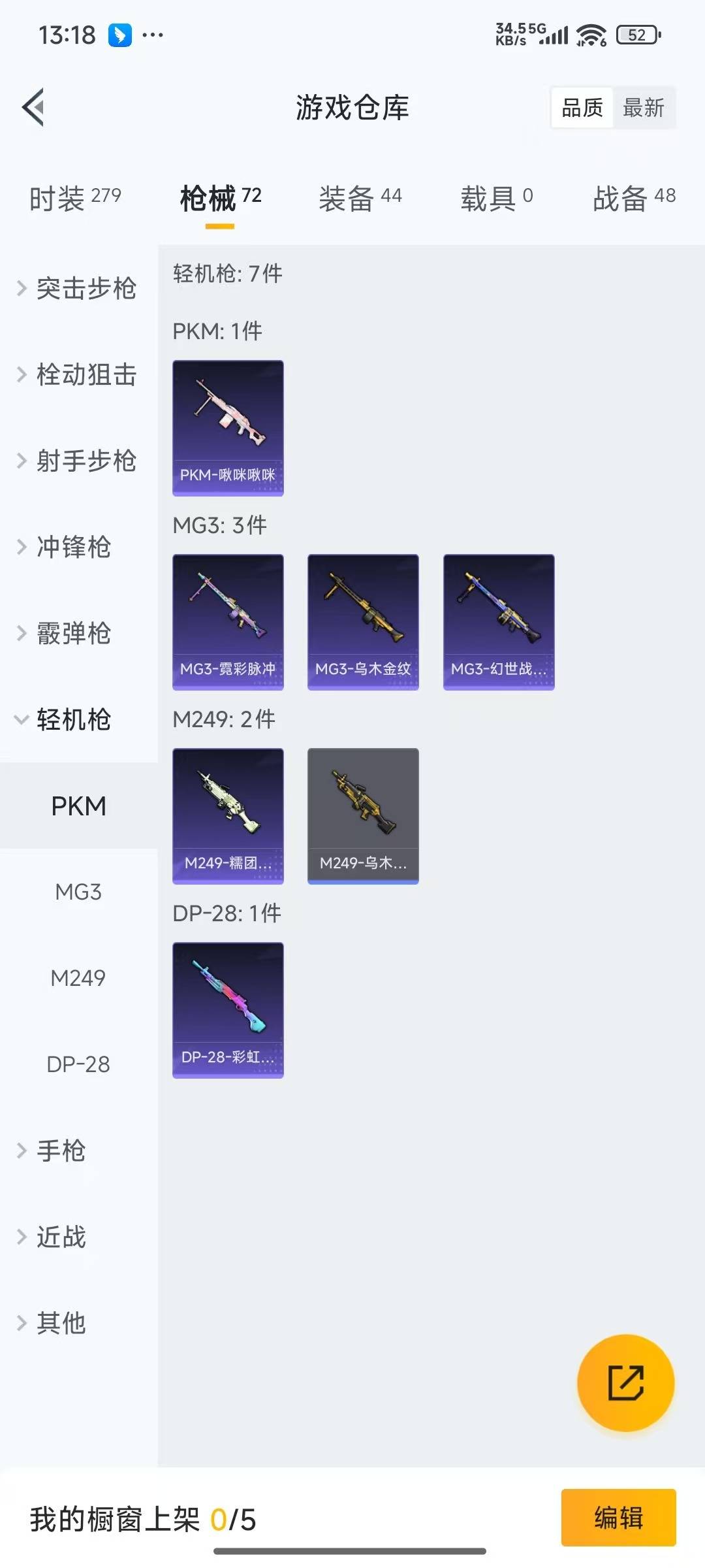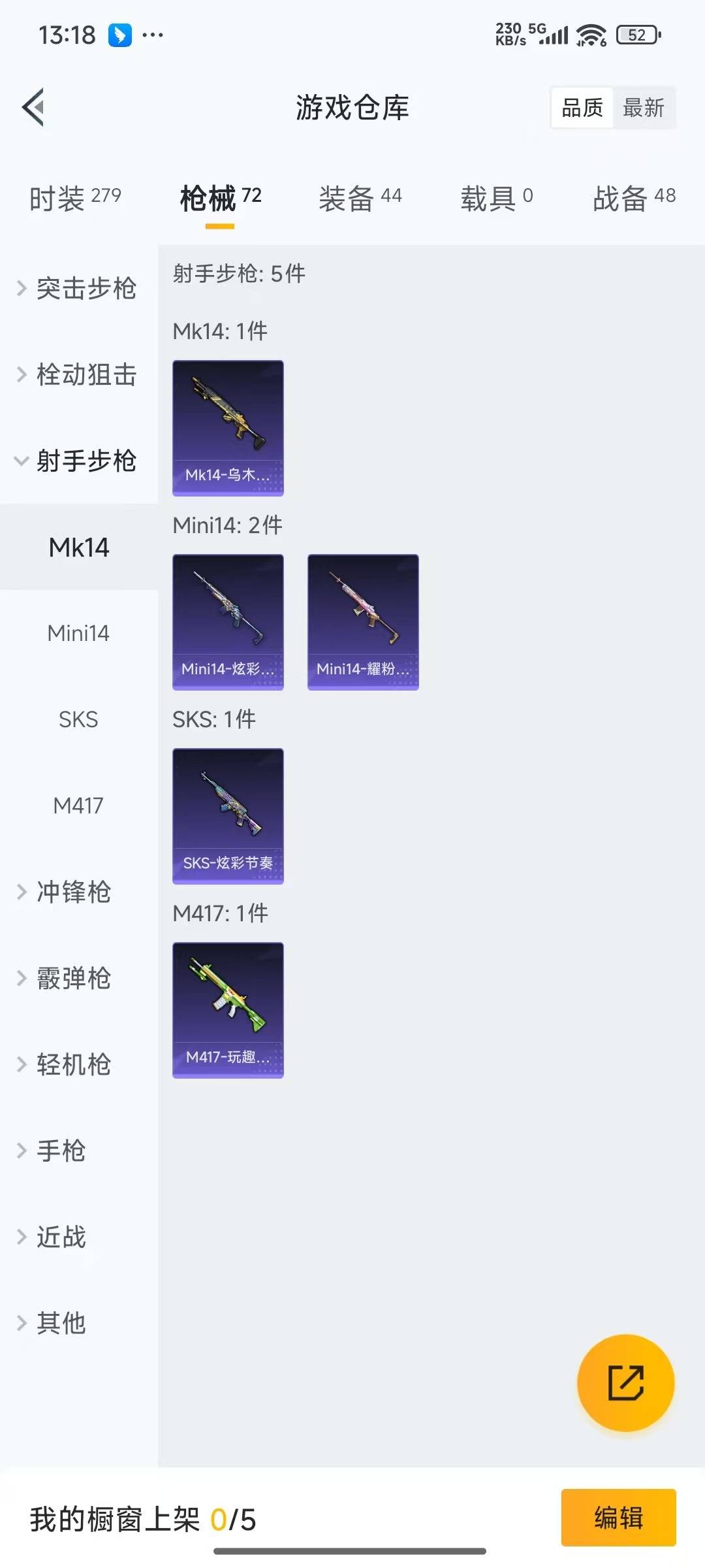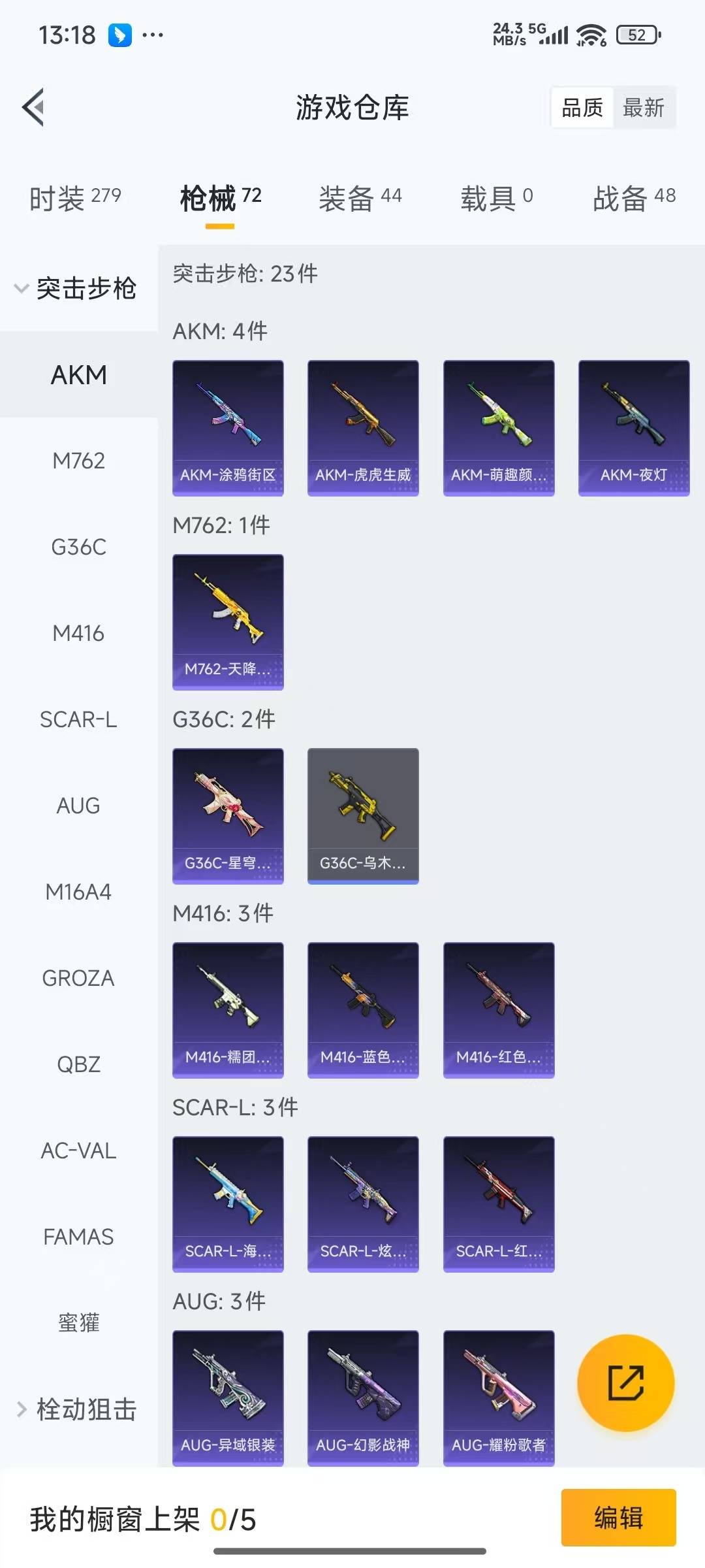 - PX_2101137-??/枪械7/装备200/载具1/战备103/王牌印记8/热力值54033/五级AKM-炫紫旋律/七级SCAR-L-青春物语/五级M416-五爪金龙/四级GROZA-焦糖拿铁/五级Kar98K-巳巳如意/四级PKM-江南烟雨/玛莎拉蒂粉色/天使彩虹糖/极致幻想/橘柚倾心/光明术士/音爆索尼克/圣堂之誓/角色-千金淑猫/套装-龟仙人/套装-巳巳如意/角色-怀庆长公主/套装-彩虹