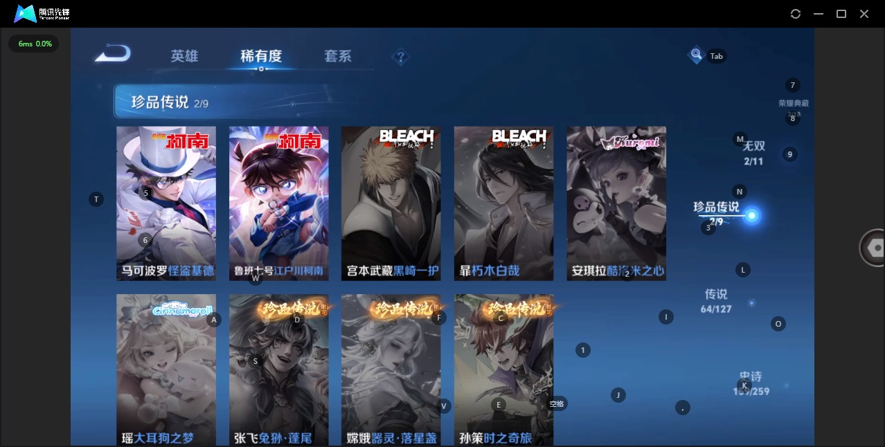 - PX_2074641-40 安卓QQ/非凡王者/312皮肤/123英雄/2典藏/0珍品无双/0无双/1珍品传说/19传说/85史诗/8稀有英雄 【1 珍品传说】怪盗基德 马可波罗, 【2 典藏皮肤】全息碎影 孙悟空,银白咏叹调 铠, 【19 传说皮肤】枫霜尽 橘右京,胖达荣荣 梦奇,启明星使 虞姬,前尘镜 娜可露露,飞鸢探春 李元芳,零号·赤焰 孙悟空,齐天大圣 孙悟空,深海之息 马可波罗,诗剑行
