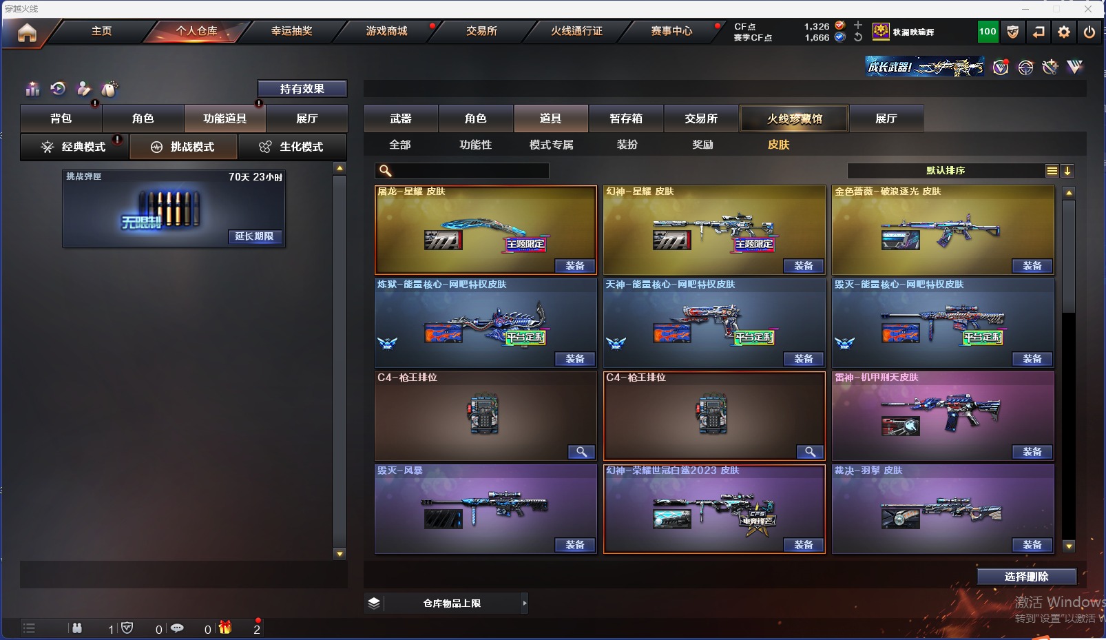 - [12292187]可二次 可修改实名 排位资格:有 13V武器 2皮肤 可排位 枪王 武器:机械迷城-穹宇,AWM-裁决,M4A1-黑龙,屠龙,AK47-无影,AK47-火麒麟,M200-幻神,王者冰魄-觉醒版,加特林-炼狱,龙啸