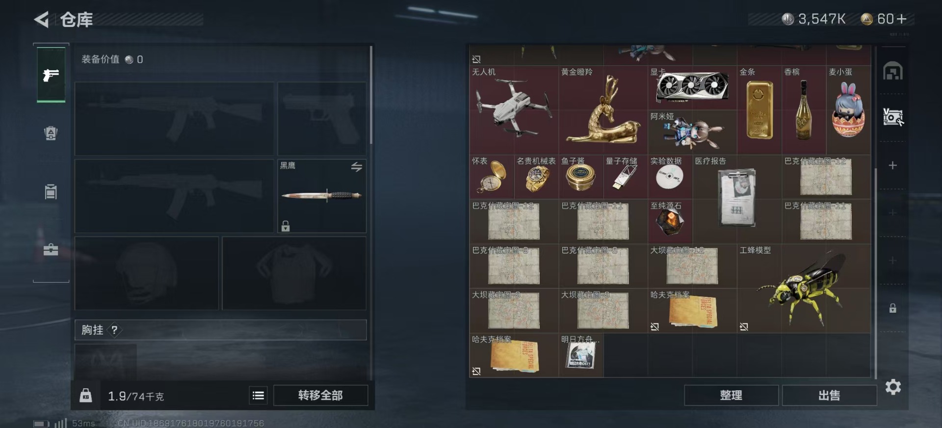 - [11529742]总资产:257.5M 9传说枪械 哈夫币:124K 进阶安全箱(2×2)9.15号到期 可二次 可修改实名 烽火地带段位:黄金 全面战场段位:无段位 传说武器皮肤:Vector冲锋枪-狩猎时刻,G3战斗步枪-狩猎时刻,M16A4突击步枪-狩猎时刻,AK-12突击步枪-特斯拉线圈,CAR-15突击步枪-阿米娅,SR-3M紧凑突击步枪-特斯拉线圈,UZI冲锋枪-特斯拉线圈,勇士冲锋枪-能天使-午夜邮差,M4A1突击步枪-阿米娅 史诗武器皮肤:MP5冲锋枪-深海恐惧,SV-98狙击步枪-林中猎手