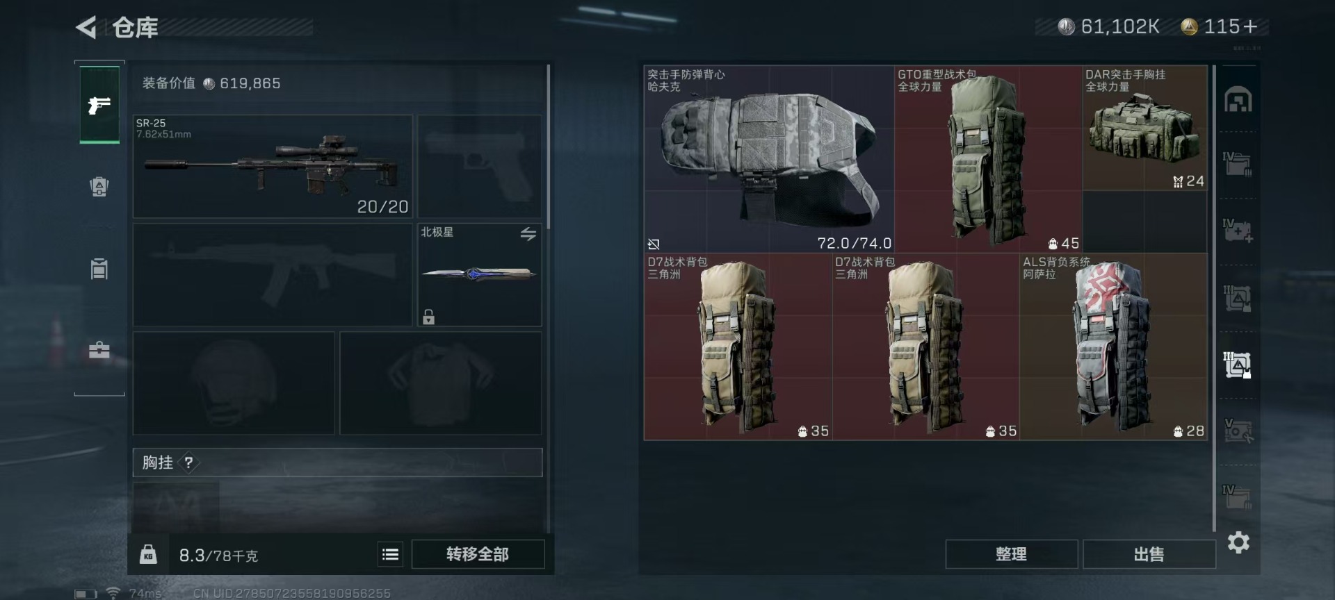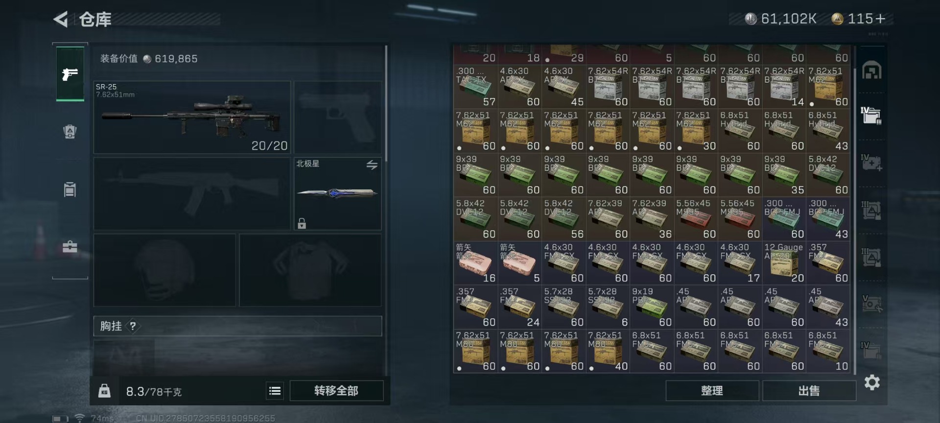 [12086075]总资产:107.3 1干员外观 3传说枪械 可二次 可修改实名 烽火地带段位:无段位 全面战场段位:无段位 哈夫币:7.301 传说武器皮肤:AK-12突击步枪-夜鹰,复合弓-黑-天际线,725双管霰弹枪-送葬人-无题密令 史诗武器皮肤:SR-25射手步枪-尖端治疗,MP5冲锋枪-深海恐惧,SR-3M紧凑突击步枪-荒野求生,勇士冲锋枪-深海恐惧,AKM突击步枪-林中猎手,.357左轮-幸运时刻,SVD狙击步枪-暗夜猎手,M16A4突击步枪-竞赛选手,M1014霰弹枪-林中猎手,SV-98狙击步枪-林中猎手,PTR-32突击步枪-英雄,PSG-1射手步枪-无垢,M250通用机枪-囚徒,SV-98狙击步枪-囚徒,S12K霰弹枪-曙光,M14射手步枪-黑鹰坠落 干员外观:露娜-黑·天际线