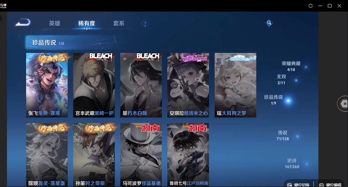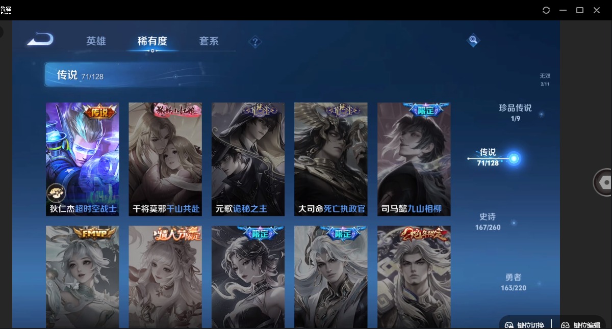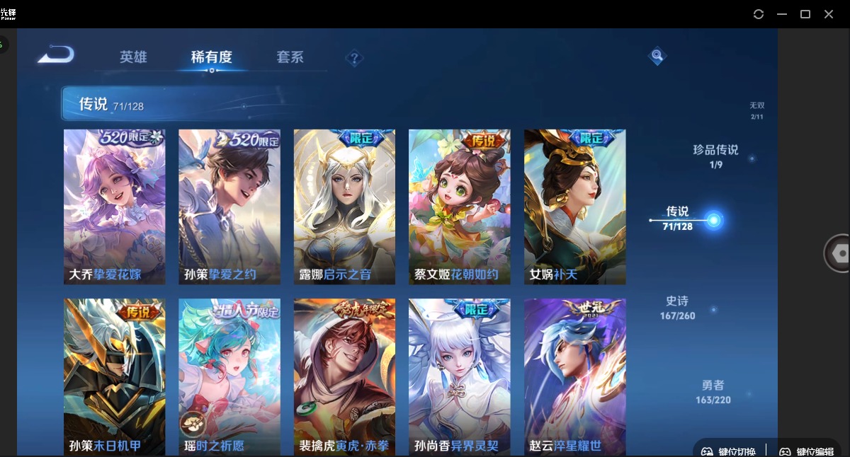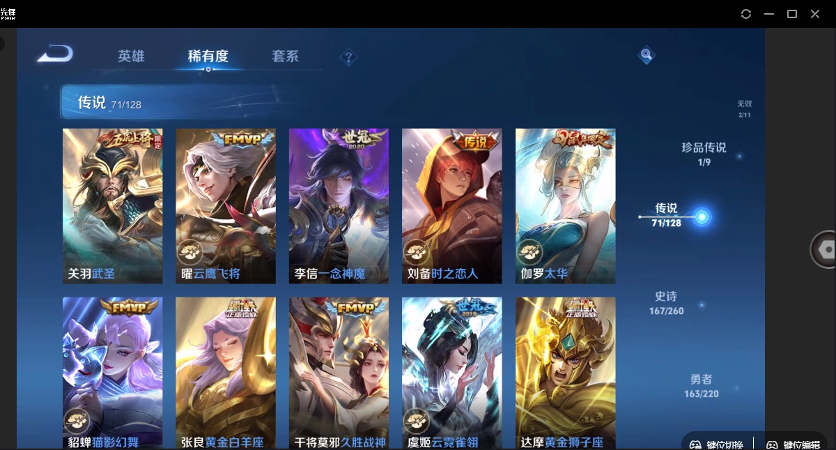 - PX_2085697-05 安卓QQ/至尊星耀/87皮肤/95英雄/0典藏/0珍品无双/0无双/0珍品传说/5传说/12史诗/4稀有英雄 【5 传说皮肤】云霓雀翎 虞姬,黄金射手座 后羿,怒海麟威 吕布,绛天战甲 铠,鸣野蒿 桑启, 【12 史诗皮肤】蔬乡物语 鲁班七号,紫霞仙子 露娜,鬼剑武藏 宫本武藏,纤云弄巧 云中君,未来纪元 赵云,魔术师 狄仁杰,皇家上将 赵云,撼地雄心 廉颇,破空之剑