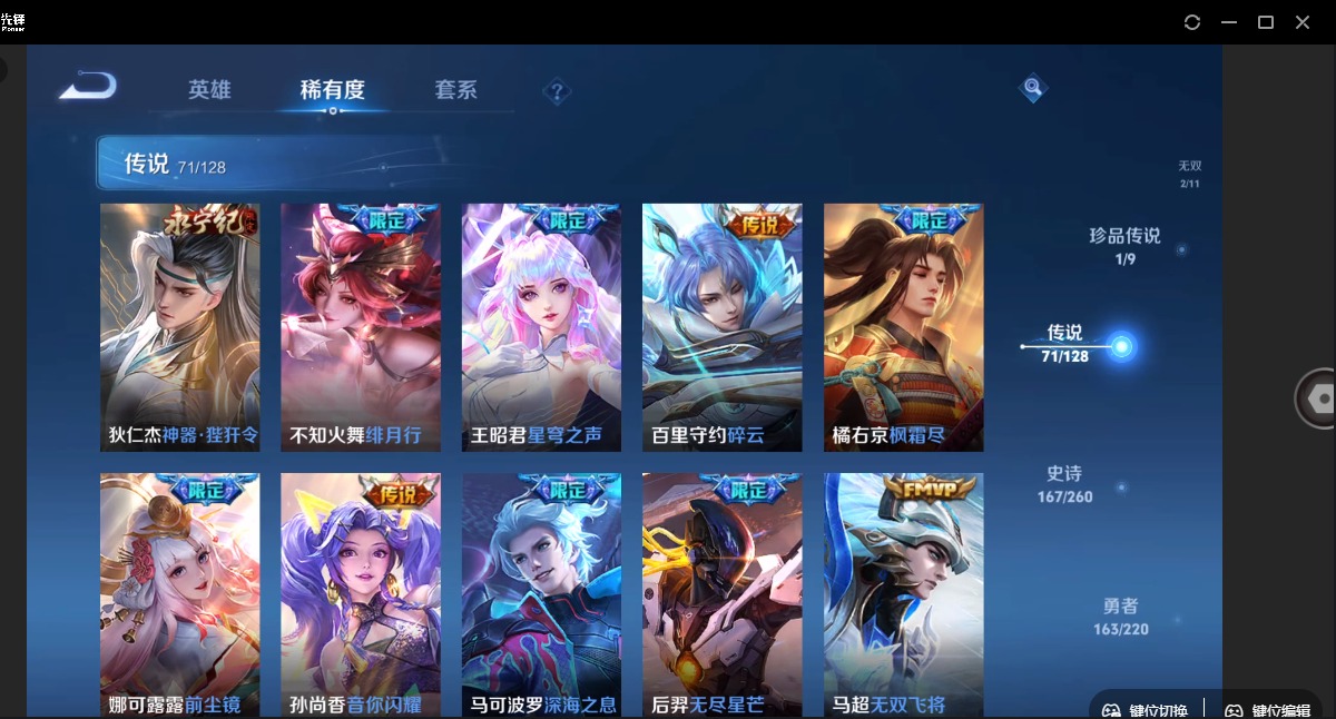 - [11275672]V6 1典藏 2传说 123英雄 212皮肤 可修改实名 优质装备:全息碎影(猴子典藏),冠军飞将 珍宝阁皮:妄想食味,蔷薇恋人 限定皮:逐霄战戟,鸣野蒿,五谷丰年,梁祝,李小龙 史诗皮:星界战将,茶境仙,破空之剑,蔬乡物语(鲁班七号),百相守梦-百里守约,百相守梦-黄忠,紫霞仙子,苍穹之光,电玩小子(小书包),特工魅影,千年之狐,电玩·爆裂旋风,江河有灵,百解令(蒙犽),高渐离燃音魔法,蒙恬荣光圣徽,偶像歌手,末日机甲-吕布,猫狗日记-孙策,乱世虎臣,修罗,女仆咖啡,摇滚巨星,水果甜心,心灵骇客,功夫厨神,暗隐猎兽者,幽灵船长,鬼剑武藏,乐园奇幻夜,纤云弄巧,缤纷独角兽,乘风破浪,水晶猎龙者,曙光守护者,金属风暴,圣诞狂欢,圣诞恋歌,鹰眼统帅,魅力维加斯,未来纪元-赵云
