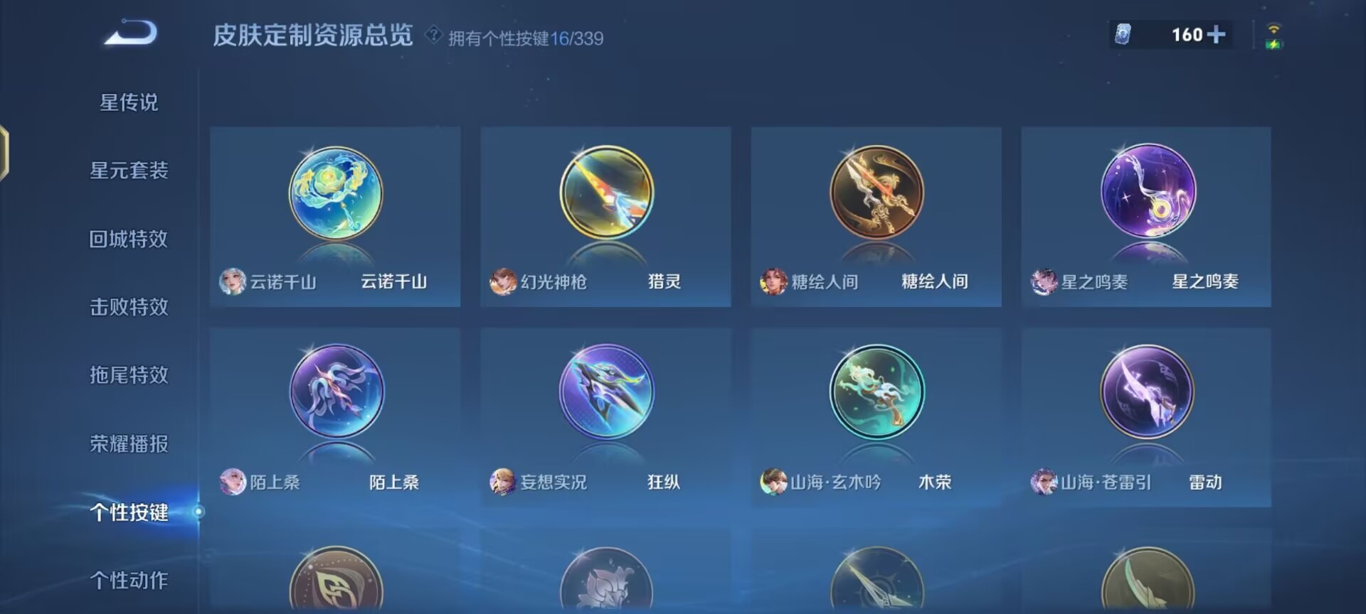 刘邦夺宝奇兵,夏侯惇朔风刀,老夫子醍醐杖,沈梦溪星空之诺,沈梦溪大漠名商,盾山御銮,苏烈千军破阵,典韦蓝屏警告,达摩沙漠行僧,牛魔御旌,鲁班七号狮舞东方,吕布猎兽之王,元歌云间偶戏,兰陵王金庭之子,裴擒虎擒涛扼浪,鲁班大师探海日志,明世隐疑决卦,蒙犽狂想玩偶喵,马可波罗暗影游猎,鬼谷子原初探秘者,张良古海寻踪,女娲朔望之晖,桑启海盐诗旅,嬴政白昼王子,狄仁杰万华元夜,程咬金演武夺筹,李元芳银河之约,李元芳云中旅人,弈星混沌棋,钟馗神迹守卫,钟馗驱傩正仪