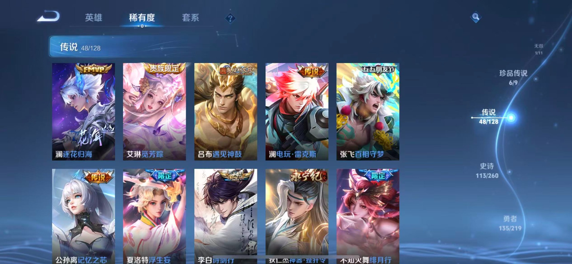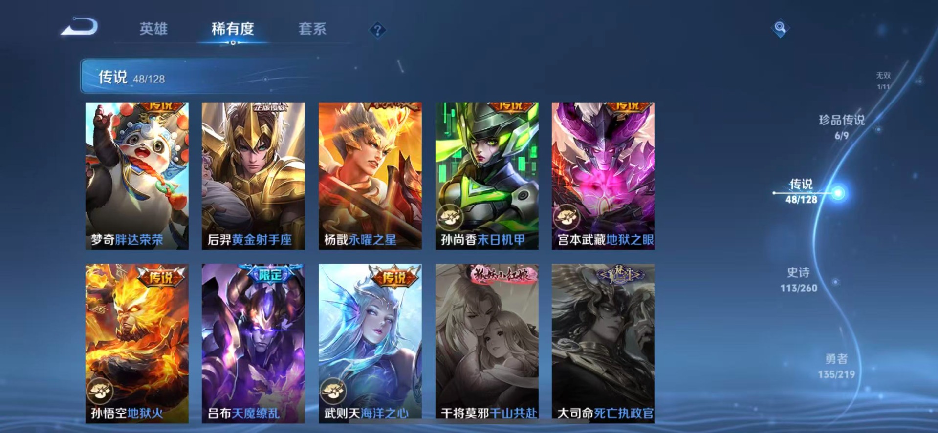- PX_2093859-实名: 可修改 贵族等级: V5 英雄数: 46 皮肤数: 33 传说皮: 无双飞将,祥瑞亨通 限定皮: 愿照·山河定