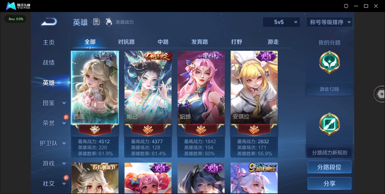 - [11996449]V8 13传说 123英雄 234皮肤 可修改实名 优质装备:云鹰飞将(小将军),久胜战神,炽阳神光,一念神魔,末日机甲-孙尚香(绿蚂蚱),时之恋人-刘备(电焊工),末日机甲-孙策,无双飞将,鹤羽星尊 传说皮:死亡执政官,幻光神枪 珍宝阁皮:万物之道,玩趣恶龙 限定皮:愿照·九州拓(澜年限),鸣野蒿,高山流水,五谷丰年,朱雀志(守约年限),如梦令-后羿,匿光追影者,寅虎·心曲(虎婆),神器·万象笔 史诗皮:鸭鸭历险记-刘禅,化蝶舞,星界战将,石田雨龙,破空之剑,琥珀纪元伽罗,蔬乡物语(鲁班七号),紫霞仙子,黄金分割率,千年之狐,永昼,百解令(蒙犽),高渐离燃音魔法,蒙恬荣光圣徽,无限星赏官,偶像歌手,白蛇,电玩·爆裂旋风,百相守梦(刘备),末日机甲-吕布,猫狗日记-孙策,乱世虎臣,修罗,水果甜心,星夜王子,德古拉伯爵,暗隐猎兽者,鬼剑武藏,暗渊魔法,舞动绿茵,地狱岩魂,纤云弄巧,拒霜思,乘风破浪,水晶猎龙者,曙光守护者,唤灵魅影,金属风暴,原初追逐者,圣诞狂欢,鹰眼统帅,黎明之约,无心,未来纪元-赵云,玫瑰异探