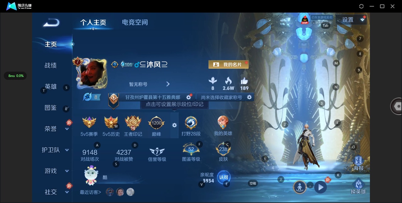 - PX_2090023-贵族等级: V6 英雄数: 124 皮肤数: 131 传说皮: 云鹰飞将,黄金白羊座,祥瑞亨通 限定皮: 高山流水,鸣野蒿,陌上桑,逐霄战戟,愿照·千秋盛,愿照·山河定,愿照·九州拓
