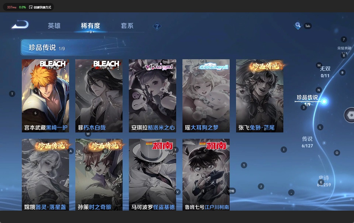 - [11684087]V8 1典藏 1珍品传说 16传说 123英雄 215皮肤 可修改实名 优质装备:鸣剑·曳影,江户川柯南,黄金射手座,冠军飞将,猫影幻舞,末日机甲-孙尚香(绿蚂蚱),地狱之眼,胖达荣荣,超时空战士-狄仁杰,妄想实况,黄金天蝎座 传说皮:乘龙·淬吴钩(孙策年限) 珍宝阁皮:胡桃夹子,万物之道 限定皮:愿照·九州拓(澜年限),逐霄战戟,鸣野蒿,至尊宝,傲雪梅枪,遇见飞天,诗剑行,齐天大圣,降魔,五谷丰年,冰锋战神,岱宗(典韦年限),引擎之心,玉兔公主,深海之息(深海大菠萝),山海·玄木吟(马可年限) 史诗皮:器灵·浮梦炉,狼魂孤将,星界战将,茶境仙,海诺心动手记,蒙犽顽岩魄,怒海争锋,蔬乡物语(鲁班七号),遇见神鹿,黄金分割率,特工魅影,千年之狐,电玩·爆裂旋风,江河有灵,高渐离燃音魔法,蒙恬荣光圣徽,偶像歌手,暗夜猫娘,末日机甲-吕布,节奏热浪,女仆咖啡,水果甜心,天才门将,星夜王子,心灵骇客,功夫厨神,暗隐猎兽者,鬼剑武藏,心灵战警,舞动绿茵,地狱岩魂,纤云弄巧,缤纷独角兽,乘风破浪,逐浪之夏,月团寄思,水晶猎龙者,曙光守护者,箭羽风息,金属风暴,原初追逐者,圣诞狂欢,圣诞恋歌,鹰眼统帅,暗夜贵公子,无心,未来纪元-赵云