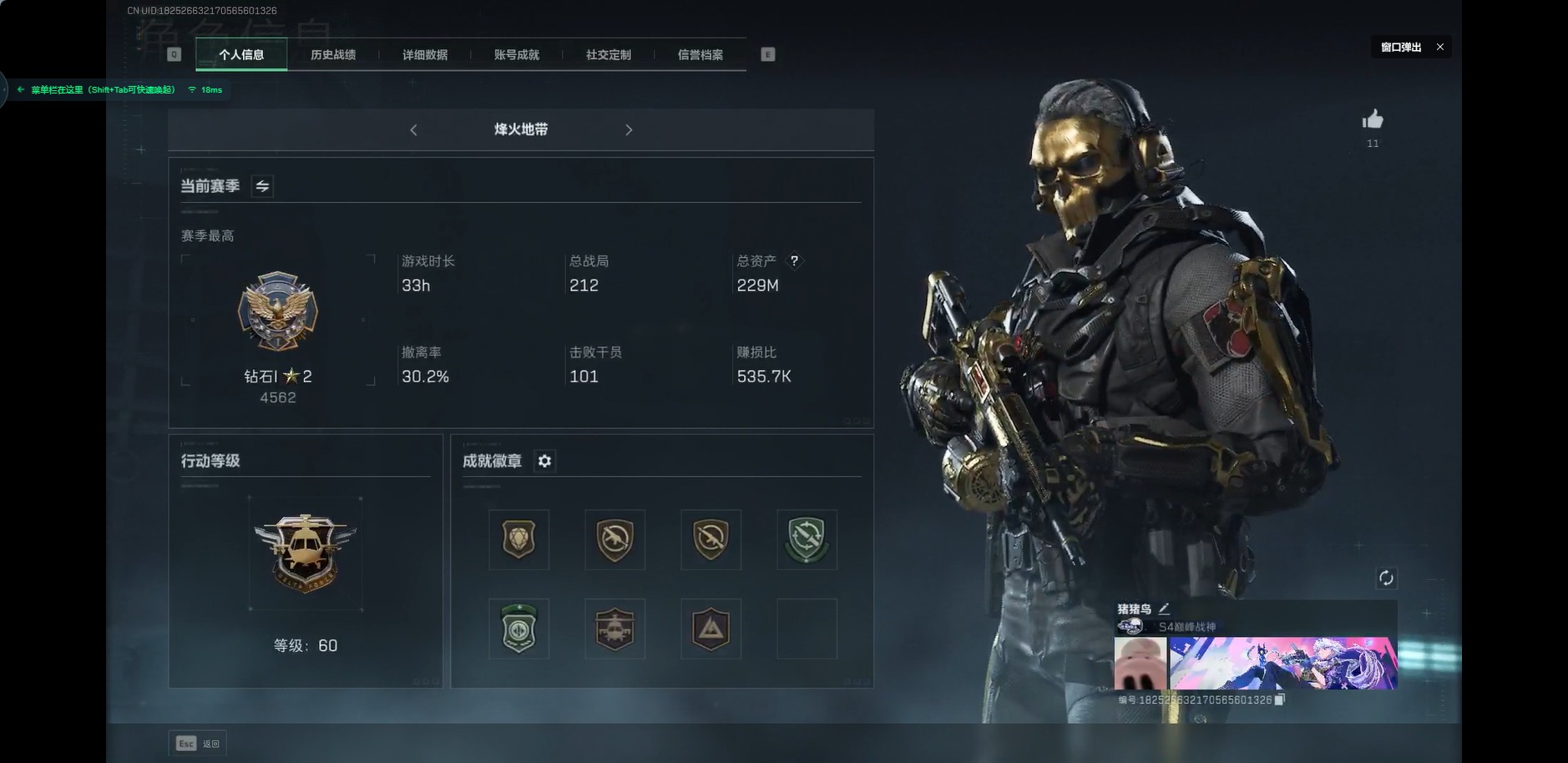 [12088193]总资产:229M 2干员外观 1近战传说 7传说枪械 哈夫币:8.235K 可二次 可修改实名 优质装备:近战-黑海 烽火地带段位:无段位 全面战场段位:无段位 传说武器皮肤:SCAR-H战斗步枪-水墨云图,SMG45冲锋枪-骑士,AK-12突击步枪-夜鹰,M4A1突击步枪-蚀金玫瑰,MP5冲锋枪-黑海,QJB201轻机枪-黑海 史诗武器皮肤:SG552突击步枪-尖端治疗,M1014霰弹枪-林中猎手,PKM通用机枪-守夜人,AS Val突击步枪-尖端治疗,M700狙击步枪-守夜人,Ash-12战斗步枪-守夜人,SR-25射手步枪-尖端治疗,勇士冲锋枪-深海恐惧,SG552突击步枪-深海恐惧,AKM突击步枪-林中猎手,M250通用机枪-囚徒,SV-98狙击步枪-林中猎手,PTR-32突击步枪-英雄,SVD狙击步枪-暗夜猎手,PSG-1射手步枪-无垢,沙漠之鹰-曙光 干员外观:红狼-蚀金玫瑰,骇爪-水墨云图