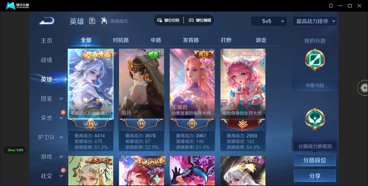 - [11959810]V6 5传说 124英雄 152皮肤 可修改实名 优质装备:一念神魔,地狱之眼,无双飞将,山海·炽霜斩(李信年限) 珍宝阁皮:优雅恋人 限定皮:鸣野蒿,高山流水,五谷丰年,猪悟能 史诗皮:东方月初,百相守梦-黄忠,电玩小子(小书包),特工魅影,蒙恬荣光圣徽,猫狗日记-孙策,节奏热浪,水果甜心,星夜王子,德古拉伯爵,幽灵船长,鬼剑武藏,暗渊魔法,地狱岩魂,缤纷独角兽,水晶猎龙者,金属风暴,原初追逐者,圣诞狂欢,鹰眼统帅,魅力维加斯,黎明之约,赏金猎手,无心,未来纪元-赵云