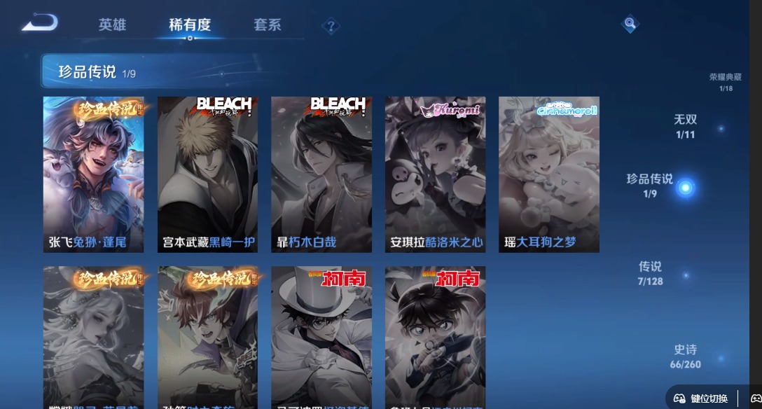 - [12062567]V8 2典藏 21传说 123英雄 343皮肤 可修改实名 连体和平 优质装备:鸣剑·曳影,九霄神辉(木兰典藏),黄金射手座,云鹰飞将(小将军),久胜战神,炽阳神光,一念神魔,末日机甲-孙尚香(绿蚂蚱),地狱火,仲夏夜之梦(大飞蛾),地狱之眼,淬星耀世,超时空战士-狄仁杰,碎云,神器·狴犴令,浮生妄 传说皮:幻光神枪 珍宝阁皮:优雅恋人,女武神 限定皮:凤求凰(白切鸡),傲雪梅枪,星穹之声,绯月行,神威(电光马子),飞衡(韩信年限),山海·碧波行(瑶年限),遇见飞天,高山流水,五谷丰年,冰锋战神,游园惊梦,梁祝,天狼狩猎者,逐梦之翼,天狼溯光者,李小龙,逐梦之影,朱雀志(守约年限),霸王别姬-虞姬,默契交锋-花木兰,孙行者,大圣娶亲,青春决赛季,蜜橘之夏,匿光追影者,深海之息(深海大菠萝),枫霜尽,匿光启智者,时之奇旅-妲己,梦圆繁星 史诗皮:遇见神鹿,紫霞仙子,苍穹之光,白龙吟,黄金分割率,特工魅影,千年之狐,魅语,无限星赏官,匿光破解者,冰冠公主,偶像歌手,龙骑士(小龙虾),末日机甲-吕布,猫狗日记-孙策,猫狗日记-大乔,乱世虎臣,节奏热浪,修罗,女仆咖啡,摇滚巨星,水果甜心,绅士熊喵,天才门将,星夜王子,心灵骇客,时之奇旅-安琪拉,功夫厨神,德古拉伯爵,暗隐猎兽者,幽灵船长,鬼剑武藏,心灵战警,天秀·启明,舞动绿茵,地狱岩魂,纤云弄巧,繁星吟游(呼啦呼啦),拒霜思,缤纷独角兽,乘风破浪,逐浪之夏,水晶猎龙者,曙光守护者,箭羽风息,金属风暴,原初追逐者,圣诞狂欢,圣诞恋歌,鹰眼统帅,暗夜贵公子,魅力维加斯,黎明之约,赏金猎手,无心,未来纪元-赵云