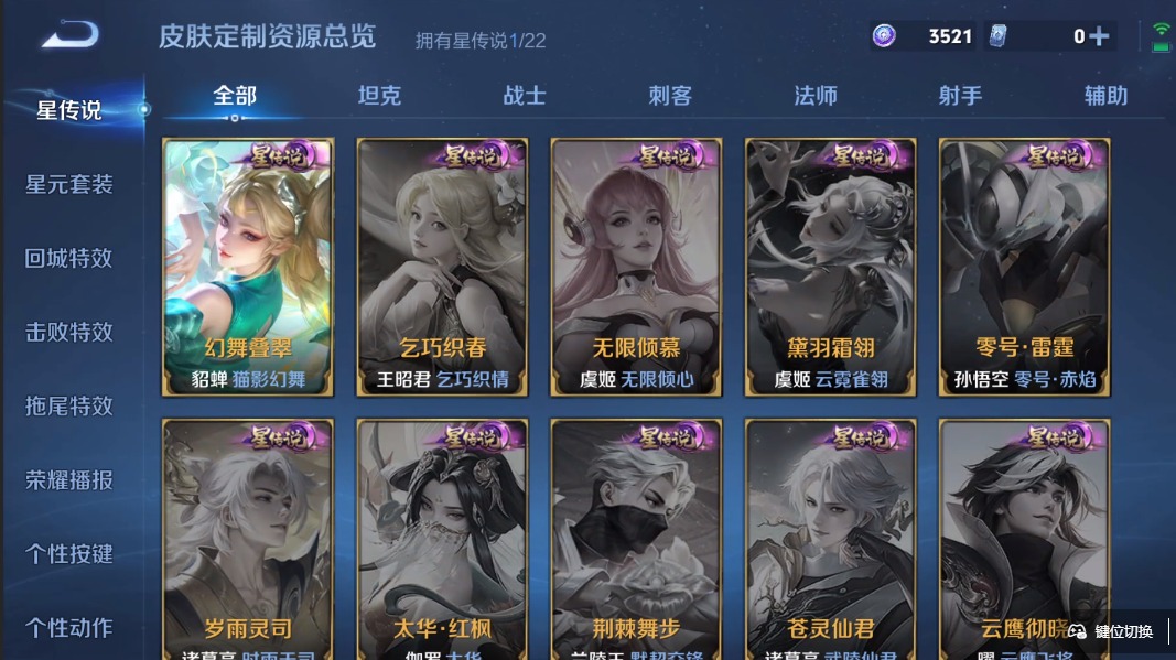 高渐离燃音魔法,刘邦德古拉伯爵,阿轲节奏热浪,铠曙光守护者,伽罗箭羽风息,孙策猫狗日记,海月浮梦罗烟,项羽苍穹之光,吕布圣诞狂欢,吕布末日机甲,露娜紫霞仙子,周瑜雪夜绮愿,诸葛亮黄金分割率,刘禅天才门将,刘禅绅士熊喵,宫本武藏鬼剑武藏,公孙离无限星赏官,貂蝉圣诞恋歌,花木兰水晶猎龙者,白起星夜王子,嬴政摇滚巨星,桑启奇遇星旅,百里玄策原初追逐者,雅典娜冰冠公主,雅典娜黎明之约,百里守约特工魅影,墨子金属风暴,澜赏金猎手,王昭君偶像歌手,钟馗乐园奇幻夜