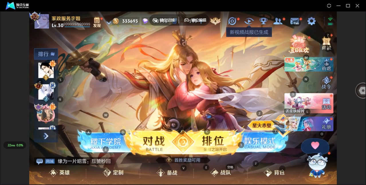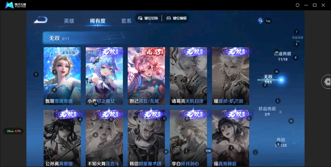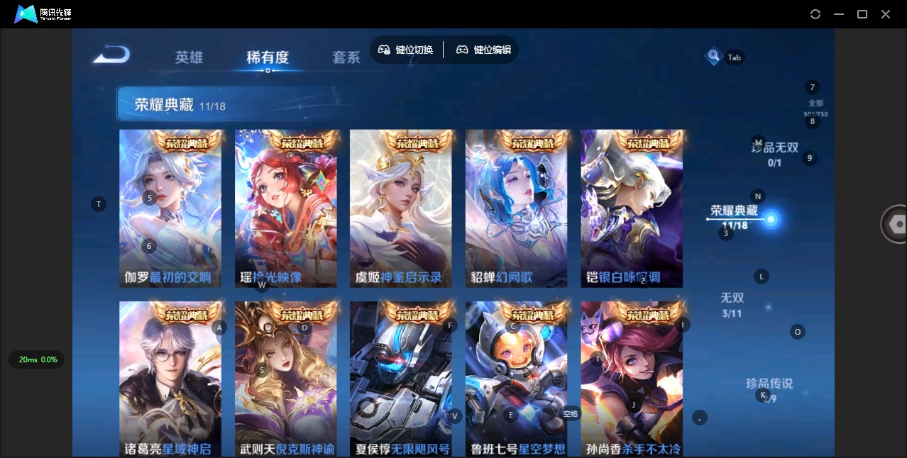 - [11294657]V5 3传说 122英雄 155皮肤 可修改实名 珍宝阁皮:妄想食味 限定皮:愿照·九州拓(澜年限),逐霄战戟,鸣野蒿,傲雪梅枪,齐天大圣,李小龙 史诗皮:化蝶舞,龙之律动,破空之剑,蒙犽顽岩魄,怒海争锋,百相守梦-百里守约,千年之狐,江河有灵,偶像歌手,节奏热浪,水果甜心,功夫厨神,德古拉伯爵,幽灵船长,鬼剑武藏,暗渊魔法,乘风破浪,水晶猎龙者,曙光守护者,箭羽风息,金属风暴,圣诞恋歌,鹰眼统帅,魅力维加斯