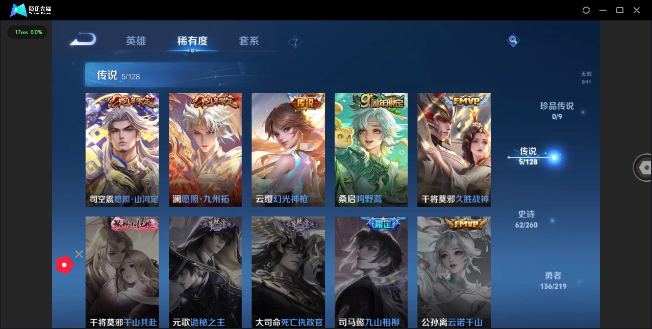 - [11471741]铠典藏,久胜,李逍遥,至尊宝,-可二次-V7-121英雄-223皮肤-1典藏-10传说-60史诗 淬星耀世-赵云 炽阳神光-镜 时雨天司-诸葛亮 冰锋战神-关羽 辉光之辰-后羿 至尊宝-孙悟空 街头霸王-韩信