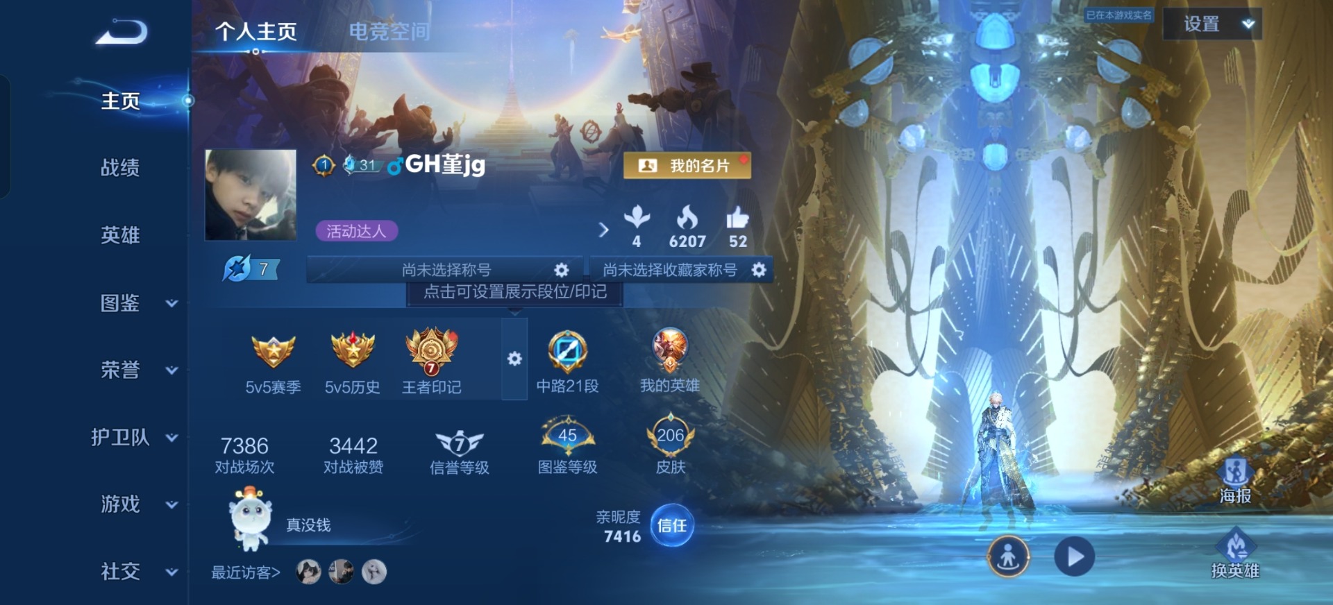 [12089076]V6 1典藏 2传说 123英雄 206皮肤 可修改实名 优质装备:鸣剑·曳影 传说皮:幻光神枪 珍宝阁皮:妄想食味,蔷薇恋人 限定皮:逐霄战戟,鸣野蒿,高山流水,五谷丰年,大圣娶亲 史诗皮:器灵·浮梦炉,化蝶舞,星界战将,谪仙醉月,戍鼓铭心,茶境仙,破空之剑,蒙犽顽岩魄,蔬乡物语(鲁班七号),乘龙·聚宝船(安琪拉年限),百相守梦-百里守约,紫霞仙子,特工魅影,千年之狐,江河有灵,高渐离燃音魔法,冰冠公主,偶像歌手,晚萤,末日机甲-吕布,猫狗日记-孙策,时之恋人-孙尚香,节奏热浪,水果甜心,绅士熊喵,心灵骇客,德古拉伯爵,暗隐猎兽者,幽灵船长,鬼剑武藏,舞动绿茵,地狱岩魂,缤纷独角兽,乘风破浪,逐浪之夏,箭羽风息,唤灵魅影,金属风暴,原初追逐者,圣诞恋歌,鹰眼统帅,未来纪元-赵云