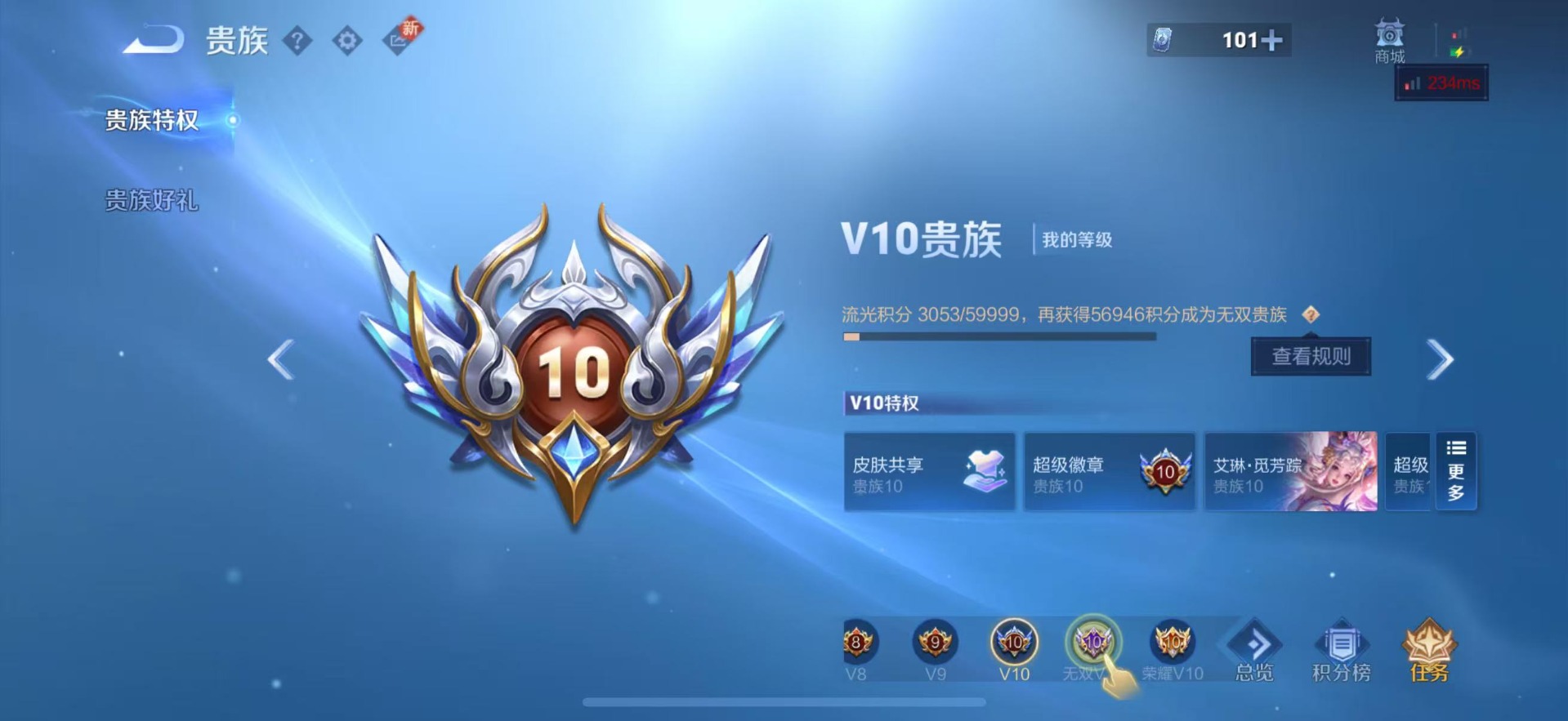 - PX_2072923-贵族等级: V4 英雄数: 66 皮肤数: 36 珍品传说: 时之奇旅-孙策 限定皮: 逐霄战戟