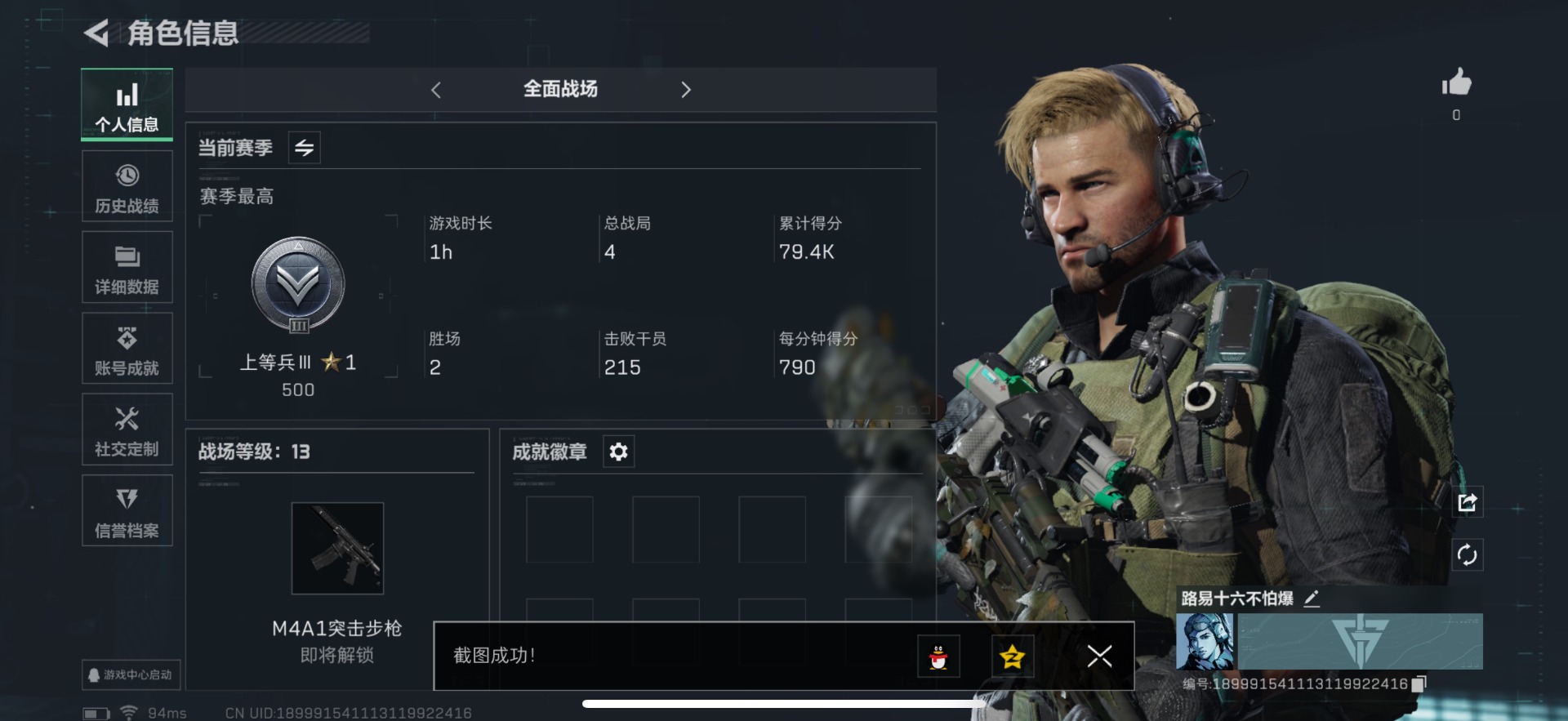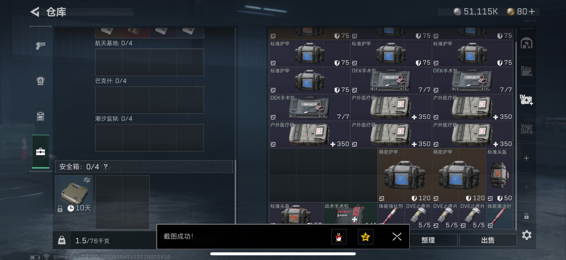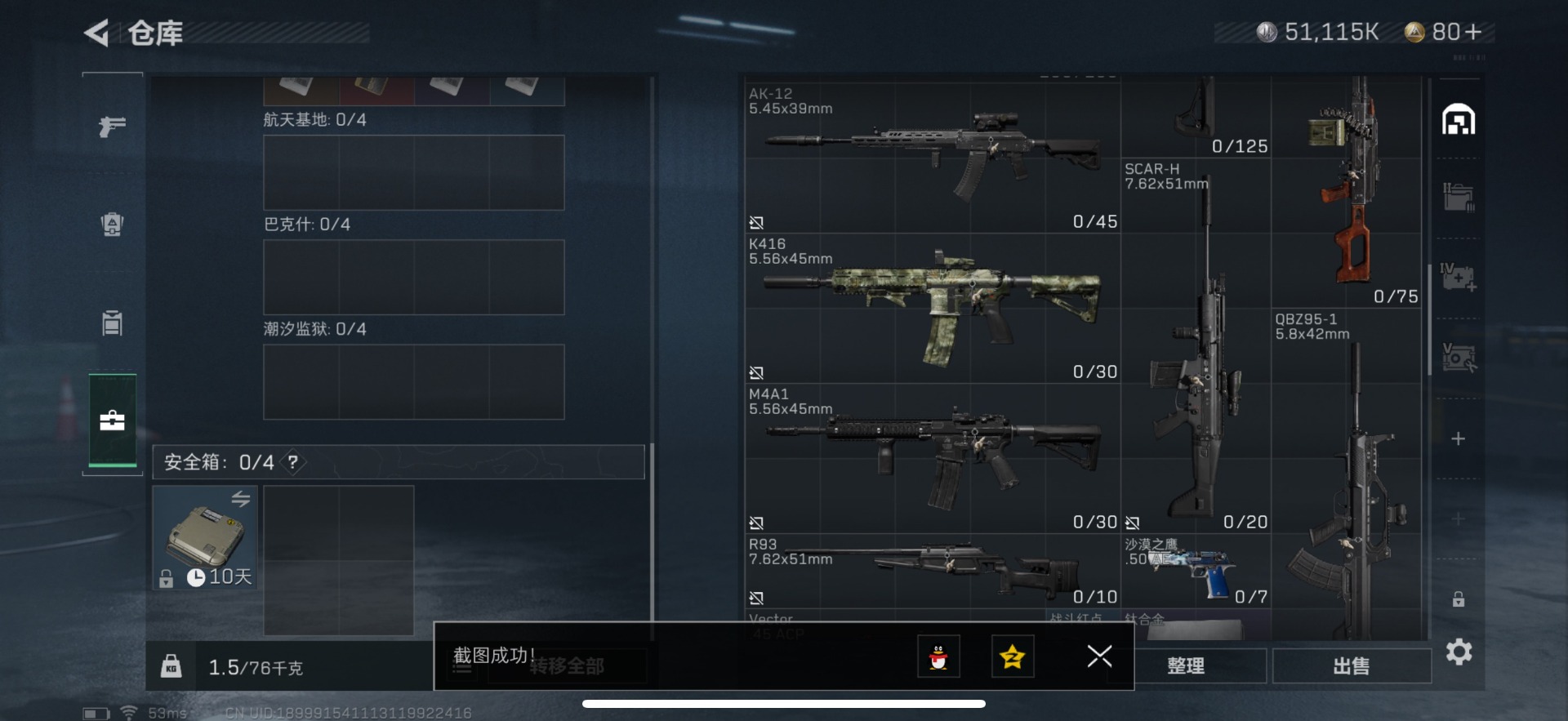 - [11604952]总资产:130.2M 1传说枪械 哈夫币:42.987K 进阶安全箱(2×2)9.15号到期 可二次 可修改实名 烽火地带段位:黑鹰 全面战场段位:军士长 传说武器皮肤:M4A1突击步枪-阿米娅