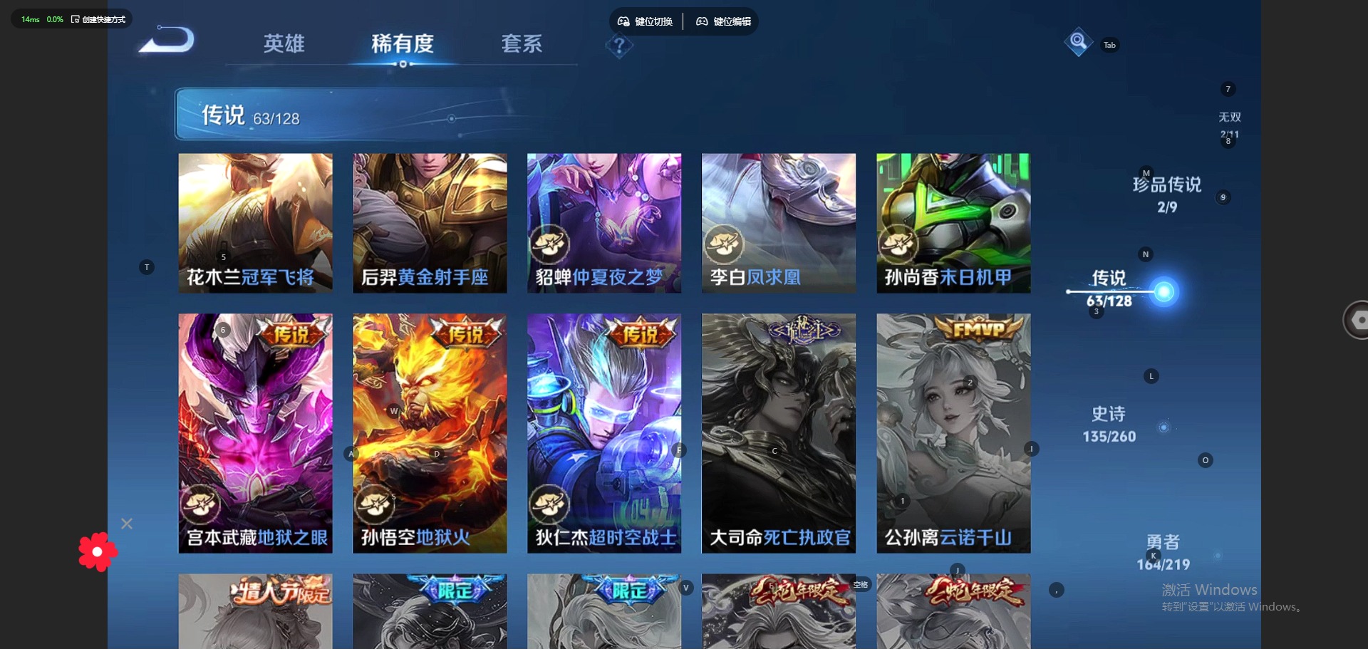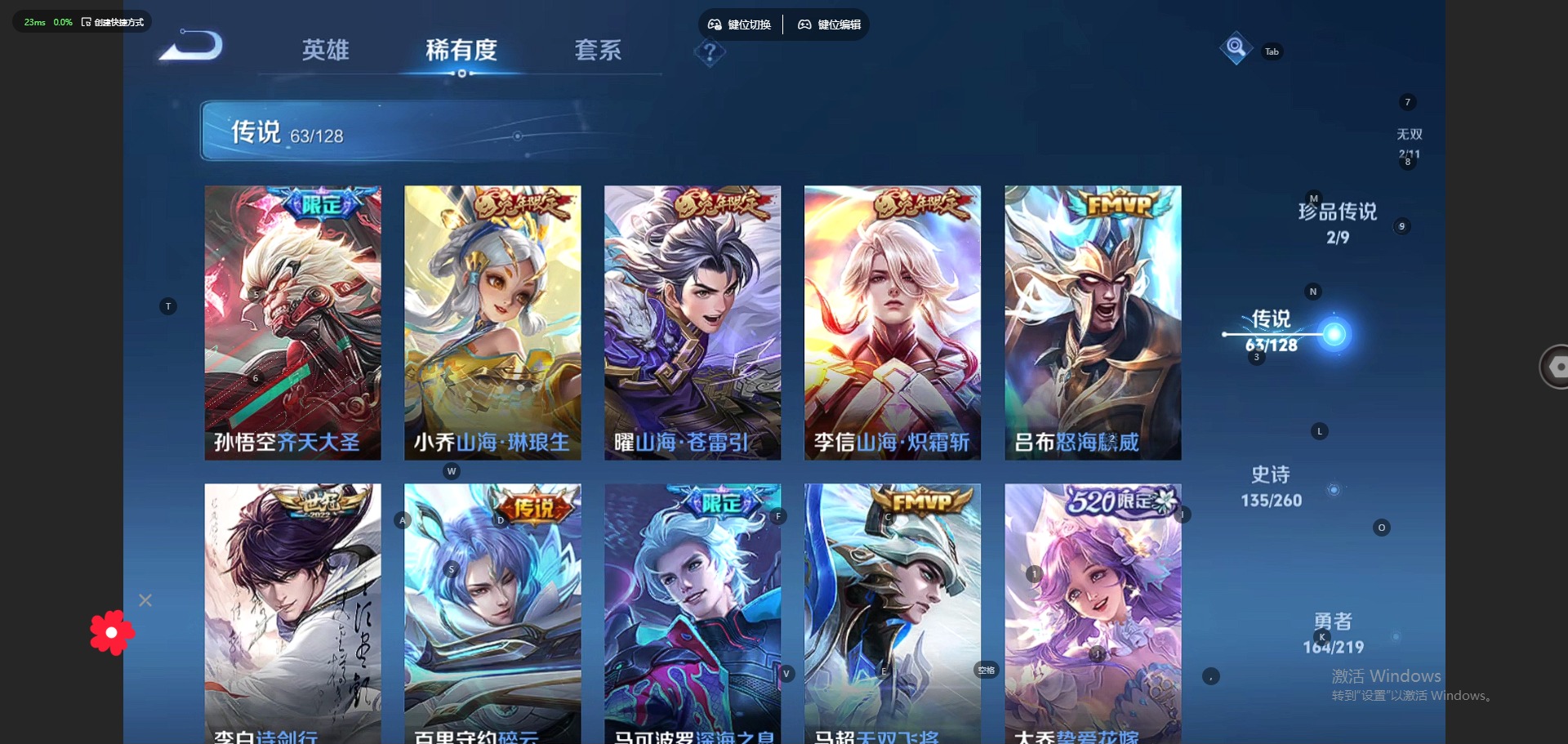 - [12115880]V8 11传说 125英雄 253皮肤 典藏英雄武则天 可修改实名 优质装备:黄金白羊座,炽阳神光,末日机甲-孙尚香(绿蚂蚱),仲夏夜之梦(大飞蛾),海洋之心,地狱之眼,超时空战士-狄仁杰,千山共赴 珍宝阁皮:优雅恋人,玩趣恶龙 限定皮:至尊宝,白虎志(电光耗子),白鹤梁神女,神威(电光马子),遇见飞天,五谷丰年,梁祝,天狼狩猎者,天狼溯光者,祈雪灵祝(雪兔子),李小龙,逐梦之影,大圣娶亲,青春决赛季 史诗皮:遇见神鹿,苍穹之光,白龙吟,黄金分割率,千年之狐,魅语,冰冠公主,偶像歌手,暗夜猫娘,龙骑士(小龙虾),猫狗日记-孙策,乱世虎臣,修罗,女仆咖啡,水果甜心,绅士熊喵,天才门将,星夜王子,心灵骇客,功夫厨神,德古拉伯爵,暗隐猎兽者,幽灵船长,鬼剑武藏,心灵战警,舞动绿茵,地狱岩魂,纤云弄巧,繁星吟游(呼啦呼啦),拒霜思,缤纷独角兽,乘风破浪,逐浪之夏,水晶猎龙者,箭羽风息,金属风暴,原初追逐者,圣诞狂欢,鹰眼统帅,暗夜贵公子,魅力维加斯,黎明之约
