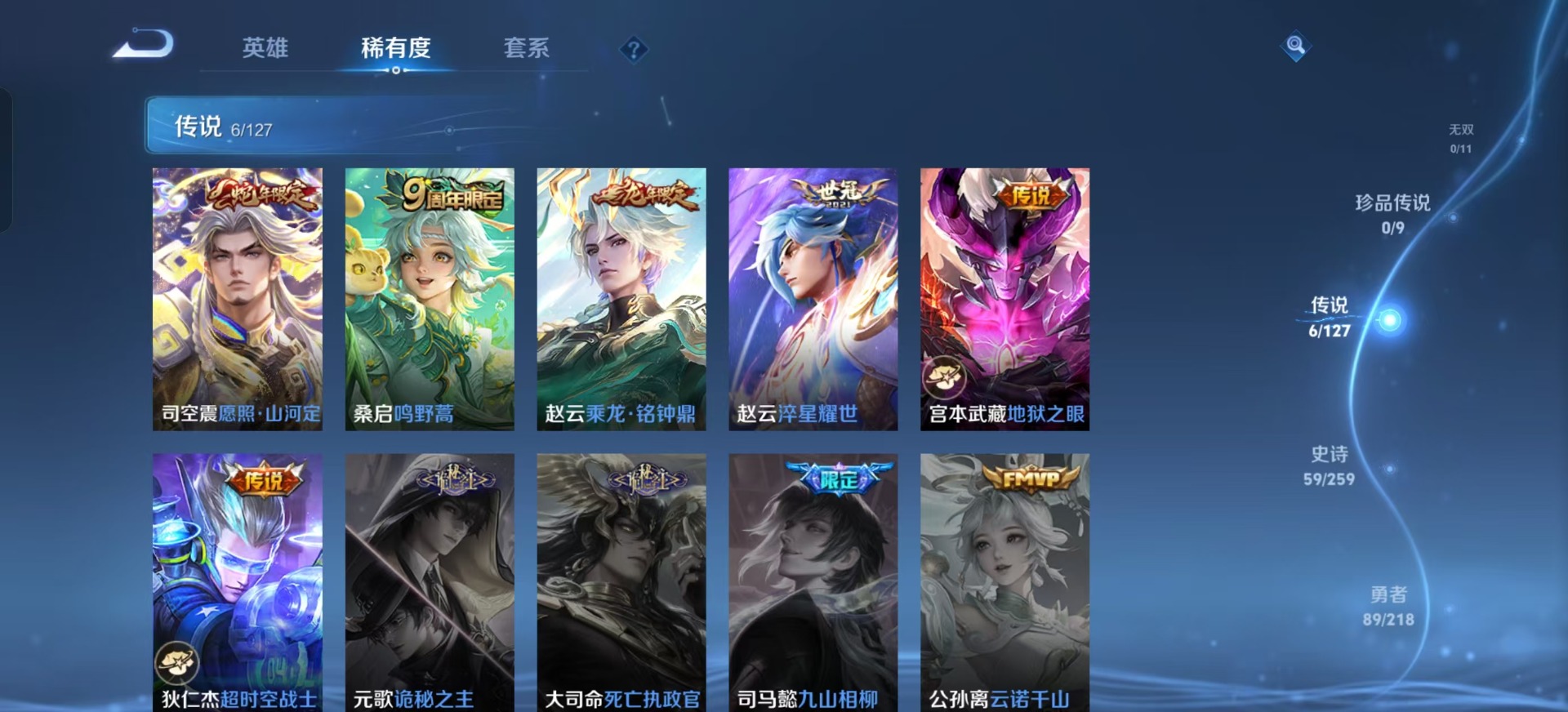 赵云百木心枪,赵云龙胆,司空震愿照·山河定,上官婉儿梁祝,桑启鸣野蒿,赵云引擎之心