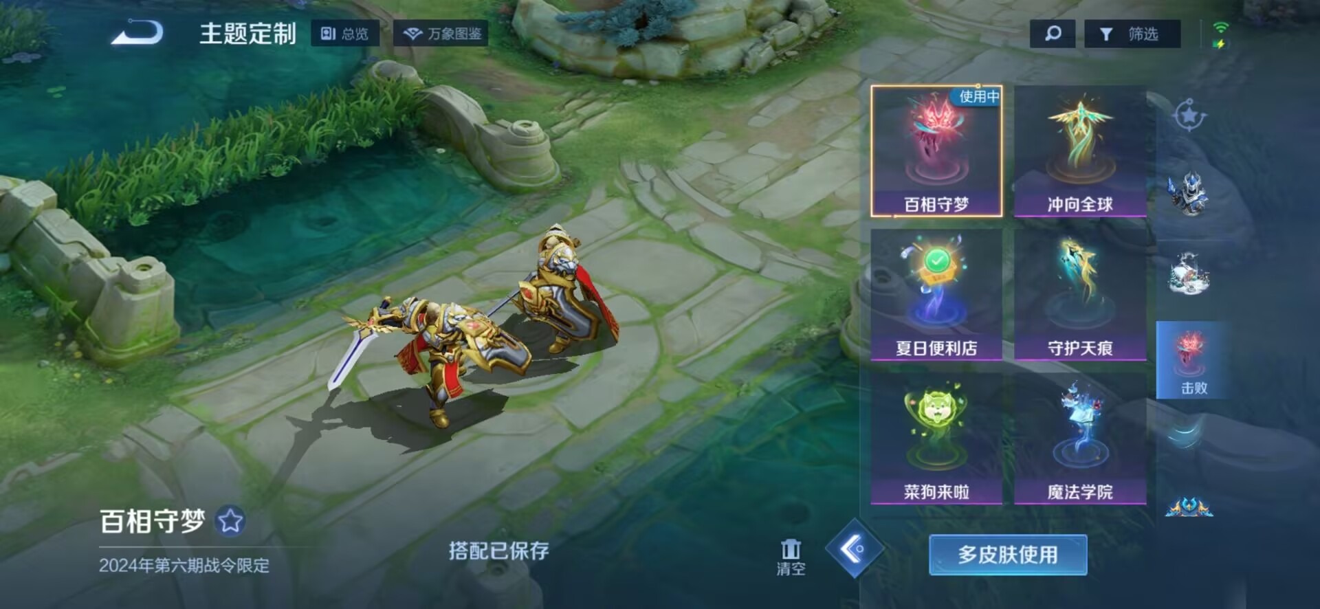 大乔白蛇,大乔猫狗日记,高渐离燃音魔法,刘邦德古拉伯爵,夏侯惇乘风破浪,阿轲暗夜猫娘,铠曙光守护者,曹操幽灵船长,伽罗箭羽风息,廉颇地狱岩魂,伽罗琥珀纪元,小乔缤纷独角兽,小乔青蛇,孙策猫狗日记,不知火舞魅语,赵怀真器灵·浮梦炉,鲁班七号电玩小子,吕布圣诞狂欢,露娜紫霞仙子,吕布末日机甲,诸葛亮黄金分割率,刘禅电玩·爆裂旋风,刘禅天才门将,刘禅绅士熊喵,宫本武藏鬼剑武藏,公孙离无限星赏官,兰陵王暗隐猎兽者,貂蝉圣诞恋歌,李白谪仙醉月,花木兰水晶猎龙者,李白千年之狐,夏洛特永昼,上官婉儿群星魔术团,安琪拉心灵骇客,蒙犽百解令,杨戬天秀·启明,白起星夜王子,亚瑟心灵战警,嬴政摇滚巨星,嬴政暗夜贵公子,程咬金功夫厨神,雅典娜冰冠公主,雅典娜黎明之约,百里守约特工魅影,李元芳逐浪之夏,墨子龙骑士,墨子金属风暴,蔡文姬舞动绿茵,瑶遇见神鹿,弈星滕王阁序,王昭君偶像歌手,嫦娥拒霜思,橘右京修罗