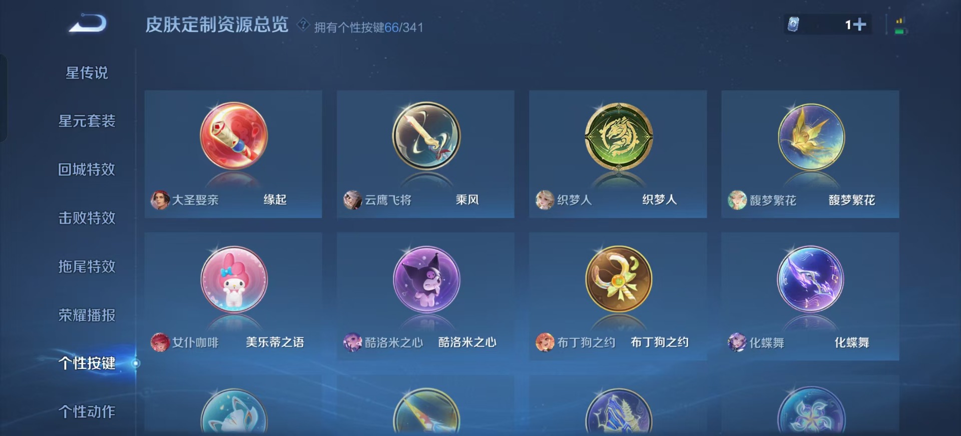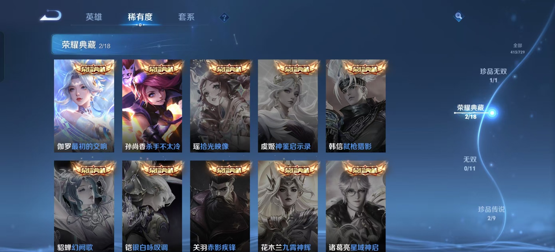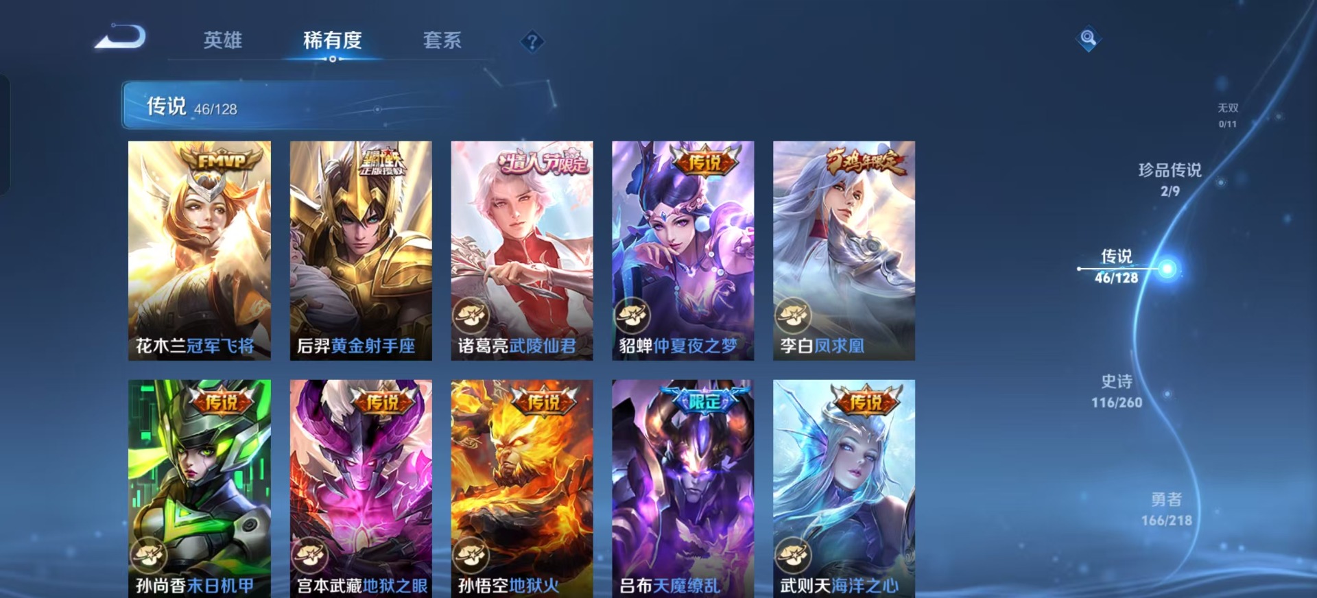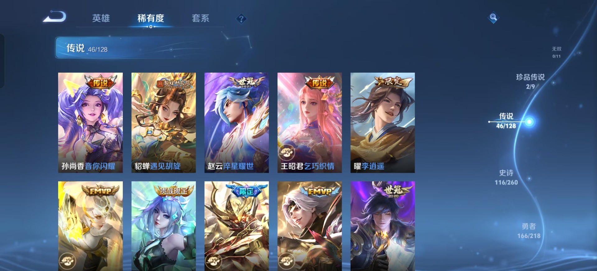曹操天狼征服者,伽罗天狼溯光者,伽罗太华,孙膑天狼运算者,后羿辉光之辰,司空震愿照·山河定,裴擒虎李小龙,上官婉儿梁祝,李白诗剑行,安琪拉魔法小厨娘,马可波罗逐梦之星,艾琳陌上桑,桑启鸣野蒿,女娲愿照·千秋盛,孙悟空孙行者,孙悟空大圣娶亲,孙悟空至尊宝,孙悟空美猴王,妲己愿照·众生和,韩信飞衡,蔡文姬愿照·福禄聚,澜愿照·九州拓,虞姬愿照·岁时盈,妲己热情桑巴,关羽冰锋战神