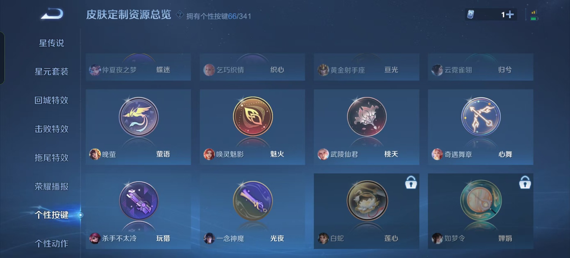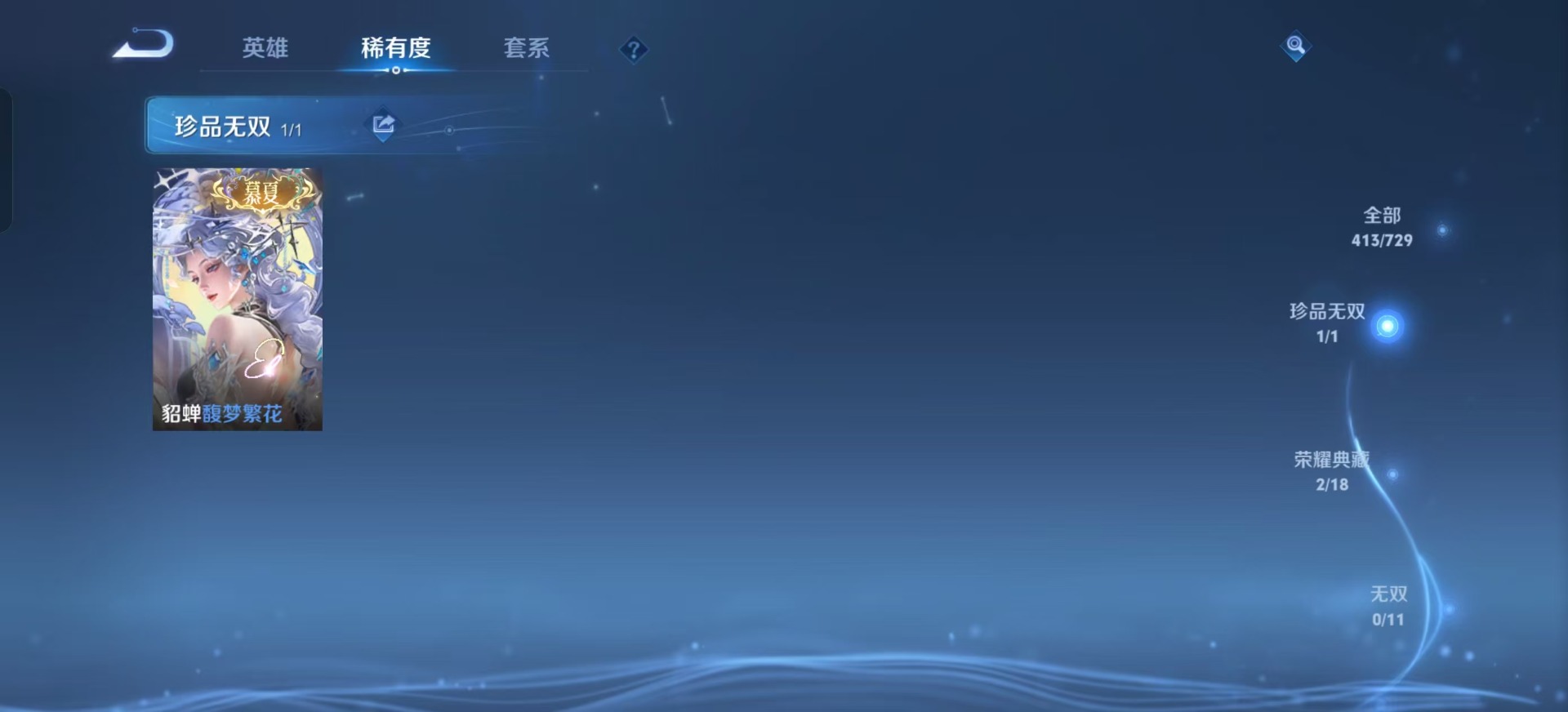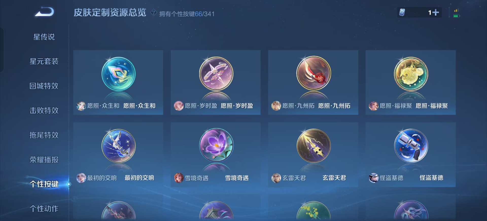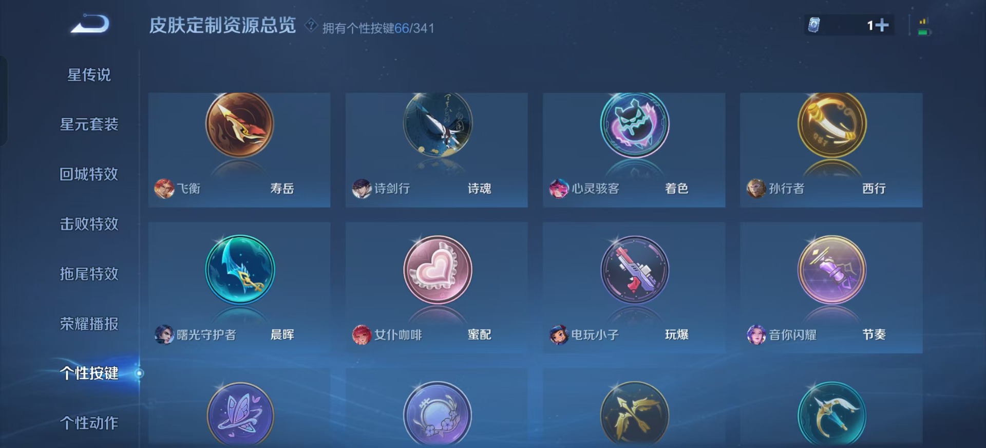 曹操天狼征服者,伽罗天狼溯光者,伽罗太华,孙膑天狼运算者,后羿辉光之辰,司空震愿照·山河定,裴擒虎李小龙,上官婉儿梁祝,李白诗剑行,安琪拉魔法小厨娘,马可波罗逐梦之星,艾琳陌上桑,桑启鸣野蒿,女娲愿照·千秋盛,孙悟空孙行者,孙悟空大圣娶亲,孙悟空至尊宝,孙悟空美猴王,妲己愿照·众生和,韩信飞衡,蔡文姬愿照·福禄聚,澜愿照·九州拓,虞姬愿照·岁时盈,妲己热情桑巴,关羽冰锋战神