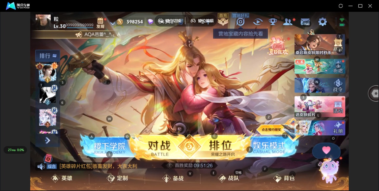 - PX_2082969-实名: 可修改 贵族等级: V6 英雄数: 119 皮肤数: 91 限定皮: 白虎志,凤凰于飞,五谷丰年