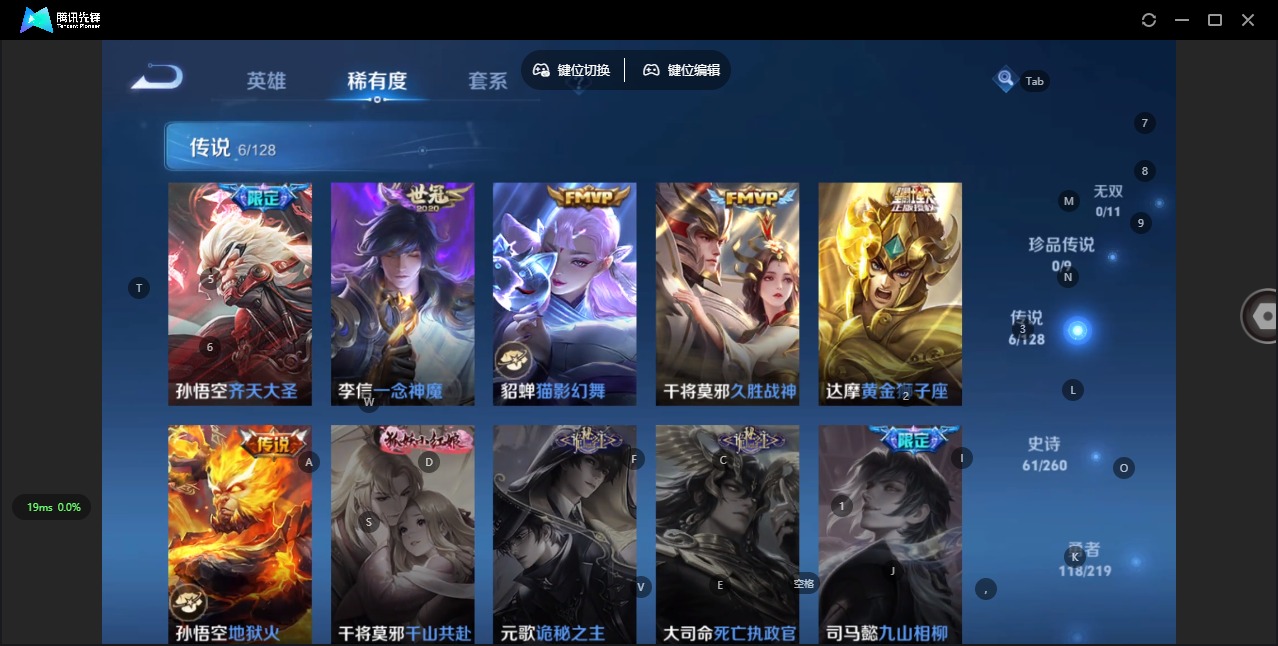 - [11792034]V7 9传说 125英雄 223皮肤 可修改实名 女号 优质装备:黄金射手座,云鹰飞将(小将军),末日机甲-孙尚香(绿蚂蚱),仲夏夜之梦(大飞蛾),超时空战士-狄仁杰 珍宝阁皮:蔷薇恋人,女武神 限定皮:鸣野蒿,至尊宝,白虎志(电光耗子),凤求凰(白切鸡),凤凰于飞,太华(伽罗年限),遇见飞天,高山流水,冰锋战神,游园惊梦,梁祝,岱宗(典韦年限),李小龙,霸王别姬-虞姬,猪悟能 史诗皮:蒙犽顽岩魄,百相守梦-百里守约,百相守梦-黄忠,电玩小子(小书包),白龙吟,黄金分割率,千年之狐,冰冠公主,龙骑士(小龙虾),猫狗日记-孙策,乱世虎臣,节奏热浪,水果甜心,绅士熊喵,天才门将,星夜王子,德古拉伯爵,暗隐猎兽者,幽灵船长,心灵战警,缤纷独角兽,乘风破浪,逐浪之夏,水晶猎龙者,箭羽风息,金属风暴,原初追逐者,圣诞狂欢,圣诞恋歌,鹰眼统帅,王者之锤,暗夜贵公子,魅力维加斯,黎明之约,未来纪元-赵云