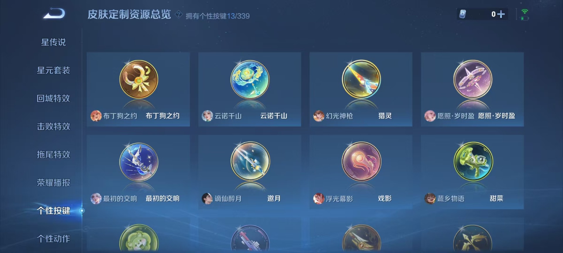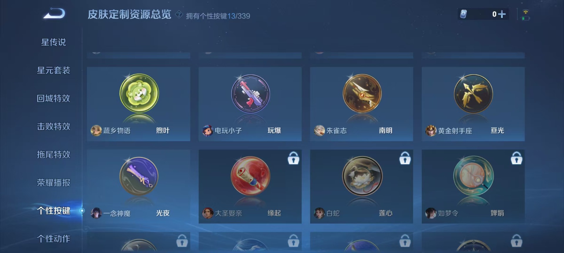 夏侯惇匿光决锋者,黄忠烈魂,伽罗天狼溯光者,后羿如梦令,庄周云端筑梦师,裴擒虎天狼狩猎者,上官婉儿梁祝,桑启鸣野蒿,猪八戒猪悟能,孙悟空孙行者,孙悟空大圣娶亲,孙悟空至尊宝,百里守约朱雀志,虞姬愿照·岁时盈
