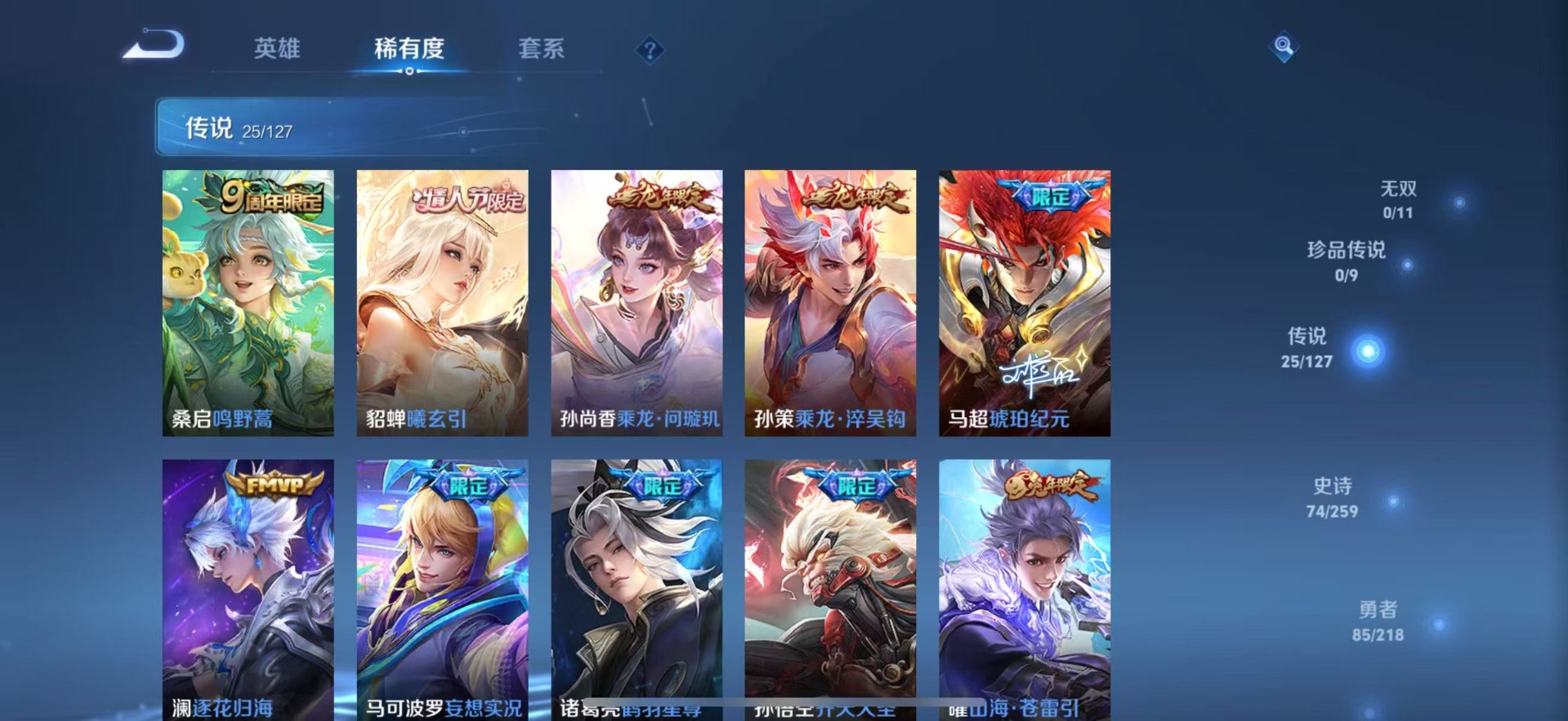 干将莫邪久胜战神,李信一念神魔,孙策乘龙·淬吴钩,孙尚香乘龙·问璇玑,王昭君乞巧织情,镜炽阳神光,貂蝉猫影幻舞,马超琥珀纪元,马超无双飞将,百里守约碎云,澜逐花归海,貂蝉曦玄引