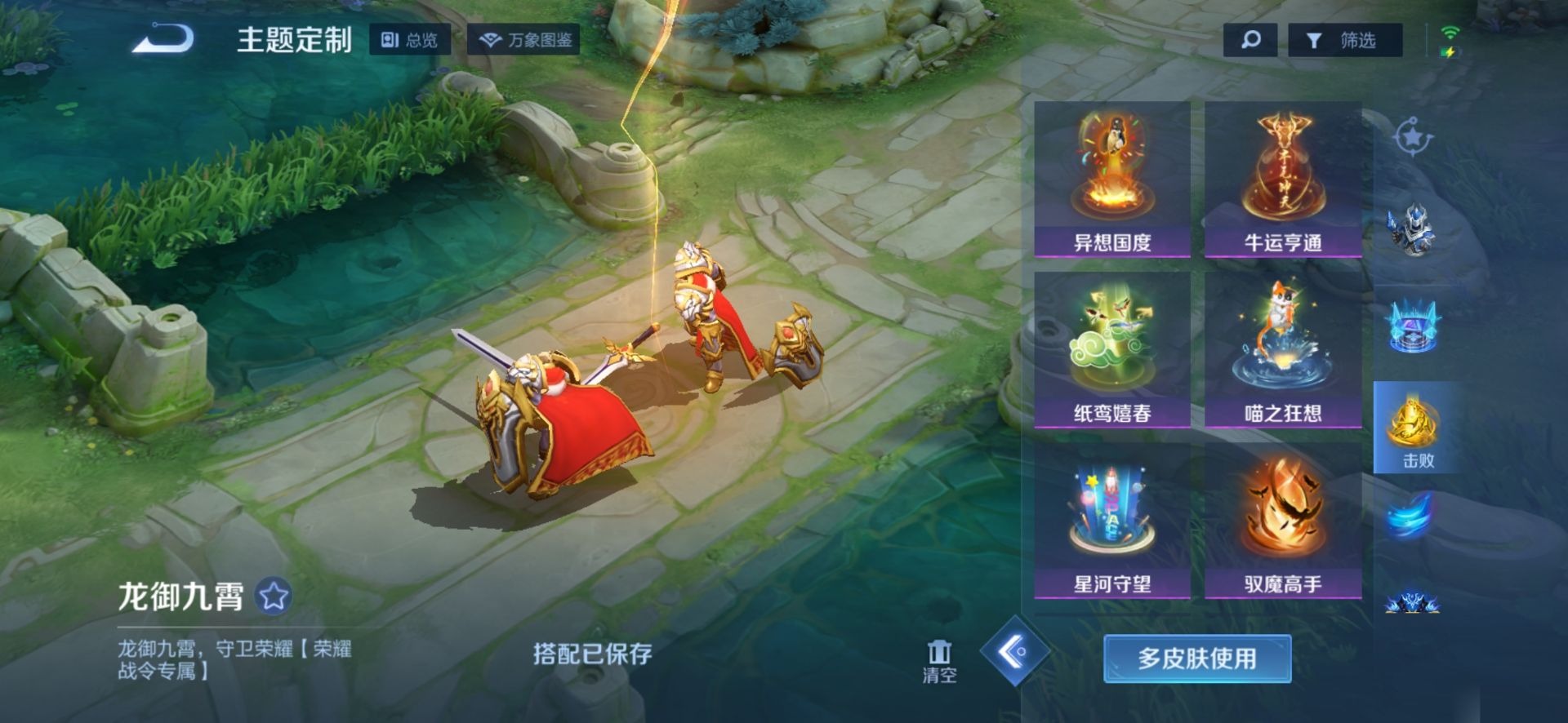 哪吒逐梦之翼,曹操天狼征服者,孙膑天狼运算者,干将莫邪冰霜恋舞曲,牛魔奔雷神使,吕布御风骁将,露娜一生所爱,庄周云端筑梦师,裴擒虎李小龙,裴擒虎天狼狩猎者,东皇太一逐梦之光,上官婉儿梁祝,孙悟空大圣娶亲,芈月白晶晶,百里玄策白虎志,妲己时之彼端,韩信傲雪梅枪,韩信逐梦之影,虞姬霸王别姬,王昭君凤凰于飞,关羽武圣