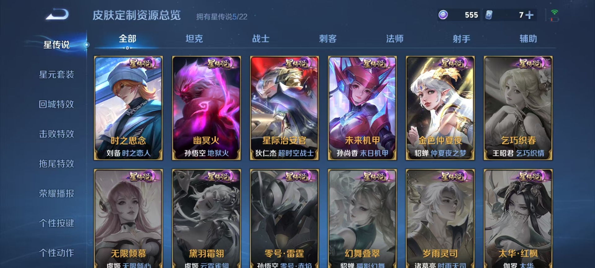 大乔猫狗日记,高渐离燃音魔法,刘邦德古拉伯爵,夏侯惇乘风破浪,阿轲暗夜猫娘,阿轲节奏热浪,哪吒雪上飞焰,铠曙光守护者,曹操幽灵船长,伽罗箭羽风息,廉颇地狱岩魂,小乔缤纷独角兽,孙策猫狗日记,赵怀真鹤归松栖,赵怀真器灵·浮梦炉,鲁班七号电玩小子,项羽苍穹之光,吕布圣诞狂欢,露娜紫霞仙子,吕布末日机甲,镜真我赫兹,诸葛亮黄金分割率,刘禅电玩·爆裂旋风,司马懿暗渊魔法,刘禅天才门将,刘禅绅士熊喵,宫本武藏鬼剑武藏,公孙离无限星赏官,亚连糖绘人间,兰陵王暗隐猎兽者,貂蝉圣诞恋歌,李白谪仙醉月,花木兰水晶猎龙者,苍狼魂孤将,李白千年之狐,上官婉儿群星魔术团,安琪拉心灵骇客,安琪拉时之奇旅,白起星夜王子,亚瑟心灵战警,嬴政摇滚巨星,嬴政暗夜贵公子,莱西奥末日机甲,程咬金功夫厨神,百里玄策热力回旋,百里玄策原初追逐者,雅典娜冰冠公主,雅典娜黎明之约,韩信白龙吟,李元芳匿光侦查者,百里守约真我赫兹,百里守约特工魅影,李元芳逐浪之夏,墨子龙骑士,墨子金属风暴,蔡文姬舞动绿茵,瑶遇见神鹿,娜可露露晚萤,王昭君偶像歌手,嫦娥拒霜思,钟馗乐园奇幻夜,橘右京修罗