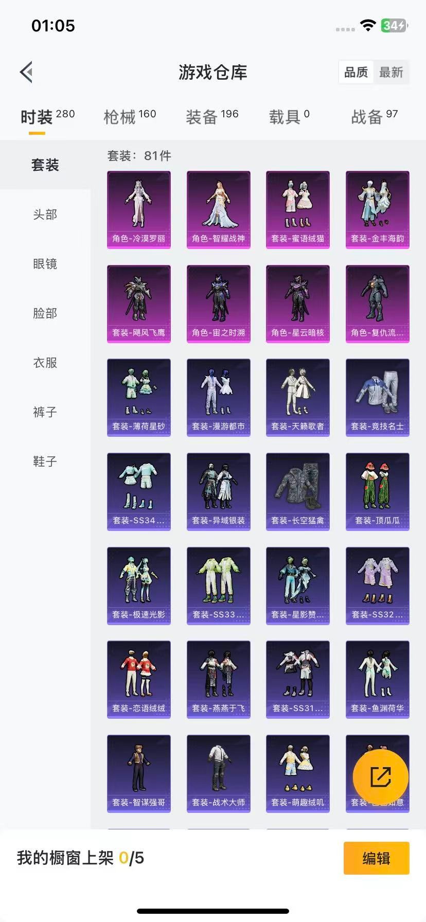 [12090360]8粉装 9特效枪 6印记 可二次 可修改实名 连体王者 优质装备:M416风花雪月,UMP45恐龙拽拽,SCAR-L-锦绣绵绵,PKM江南烟雨,七级UMP45-恐龙拽拽,M416电玩时刻,GROZA-镜光银凌,AUG-暖羊咩咩,智耀战神,冷漠罗丽,Kar98K-巳巳如意 热门装扮:飓风飞鹰,复仇流浪者,宙之时溯,星云暗核,蜜语绒猫,金丰海韵 稀有枪皮:DP-28-豹影疾电 六级特效枪:六级PKM-江南烟雨 五级特效枪:五级GROZA-镜光银凌,五级Kar98K-巳巳如意,五级DP-28-豹影疾电,五级AUG-暖羊咩咩,五级M416-电玩时刻,五级SCAR-L-锦绣绵绵,五级M416-风花雪月 紫色装扮:幻彩翩翩,SS31特训套装,极速光影,SS30特训套装,SS33特训套装,青涩时光,顶瓜瓜,圣诞惊喜,军刀雅典娜,英勇保护者,天籁歌者,长空猛禽,霓虹街区,缤纷果语,荣耀,魅力单车,龙的传人,蝶变,香桃花海,海岛探路者,涂山之恋,深蓝色名流,幻影武者,白色伏地魔,空岛之星,灼焰舞者,燃烧卡路里,雏菊兔兔,萝兰蝴蝶,SS29特训,狂花道·雅典娜,星途旅人,创世·幻影,SS28特训,冰公主,异域银装,鱼渊荷华,燕燕于飞,巳巳如意,都市丽猫,青团波波,糖糖葫芦,棉花软糖,竞技名士,街头风暴,深海梦境,惊鸿侠骨,甜梦熊熊,神气柴柴,懵萌河马,SS24特训(SS24特训套装),SS25特训,元气发射,金戈铁马,锦衣飞扬,粉红小猪,焰鹰斗篷,幻羽潜行,幽夜迷踪,SS27特训,萌趣绒叽,华灯初上,SS26特训,智谋强哥,星影赞美诗,SS32特训服(SS32特训套装),恋语绒绒 优质战备:江南烟雨降落伞,万古烈焰降落伞,超新星降落伞,恐龙拽拽降落伞,千金淑猫降落伞,蜜语绒猫降落伞,时光之吻飞行器,幻星舰长降落伞,荧海星豚降落伞,鬼刀降落伞,戏水时光降落伞,环太平洋降落伞,未来歌姬降落伞,梦幻火箭降落伞,飞行器-齐天大圣
