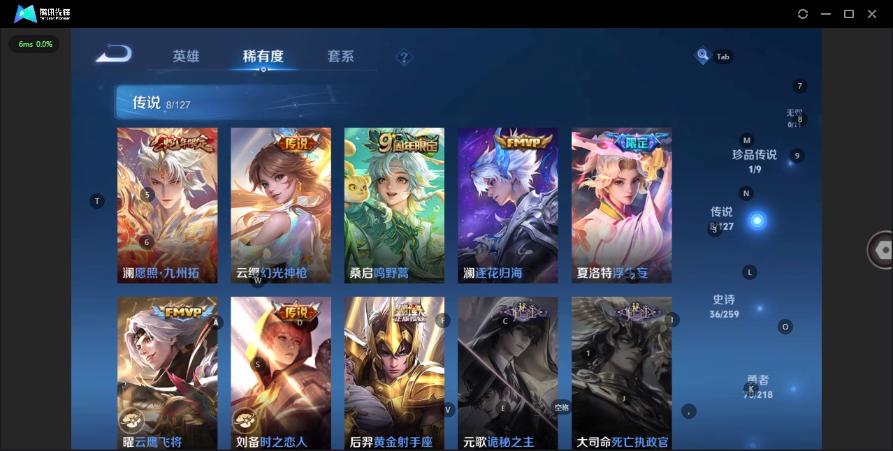 - PX_2083207-42 安卓QQ/尊贵铂金/301皮肤/123英雄/2典藏/0珍品无双/0无双/0珍品传说/17传说/88史诗/8稀有英雄 【2 典藏皮肤】天鹅之梦 小乔,弑枪猎影 韩信, 【17 传说皮肤】启明星使 虞姬,无双飞将 马超,白虎志 百里玄策,地狱火 孙悟空,云鹰飞将 曜,永曜之星 杨戬,遇见胡旋 貂蝉,祈雪灵祝 公孙离,炽阳神光 镜,时之恋人 刘备,久胜战神 干将莫邪,末日机甲
