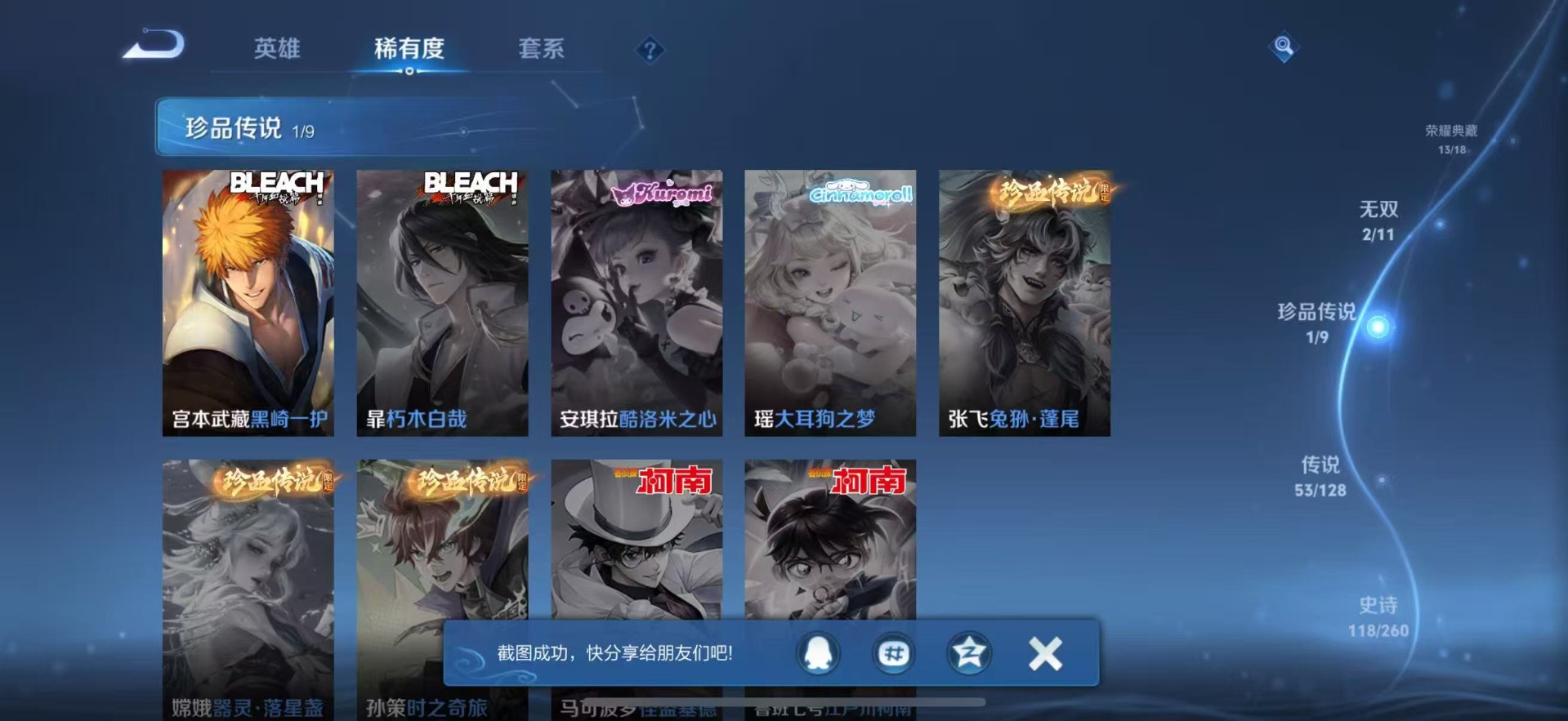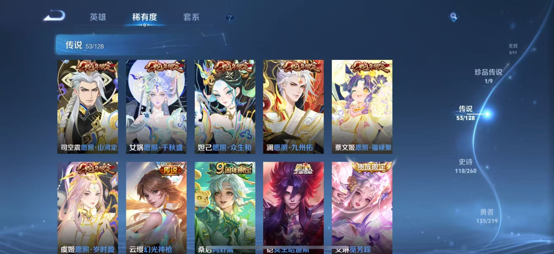 - PX_2091202- 可二次 V7 贵族积分35134 安卓QQ/ 241皮肤/ 122英雄 【1 珍品传说】,时之奇旅 孙策, 【1 典藏皮肤】,最初的交响 伽罗, 【10 传说皮肤】,云鹰飞将 曜,浮生妄 夏洛特,一念神魔 李信,山海·琳琅生 小乔,愿照·九州拓 澜,幻光神枪 云缨,愿照·山河定 司空震,愿照·岁时盈 虞姬,鸣野蒿 桑启,云诺千山 公孙离, 【63 史诗皮肤】,高山流水 庄