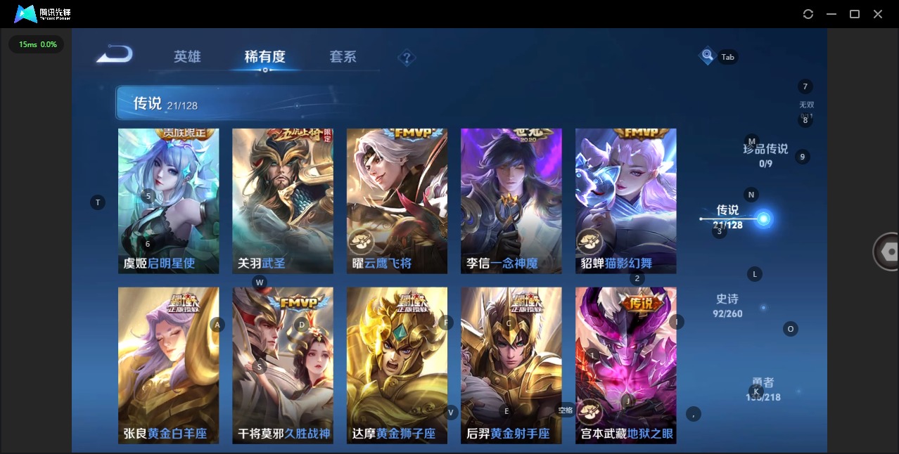 - PX_2108043-Q/至尊星耀/227皮肤/124英雄/2典藏/0珍品无双/1无双/4珍品传说/17传说/55史诗/8稀有英雄 【4 珍品传说】酷洛米之心 安琪拉,大耳狗之梦 瑶,时之奇旅 孙策,器灵·落星盏 嫦娥, 【2 典藏皮肤】杀手不太冷 孙尚香,九霄神辉 花木兰, 【1 无双皮肤】真我赫兹 瑶, 【17 传说皮肤】启明星使 虞姬,云霓雀翎 虞姬,地狱火 孙悟空,游龙清影 西施,仲夏夜之