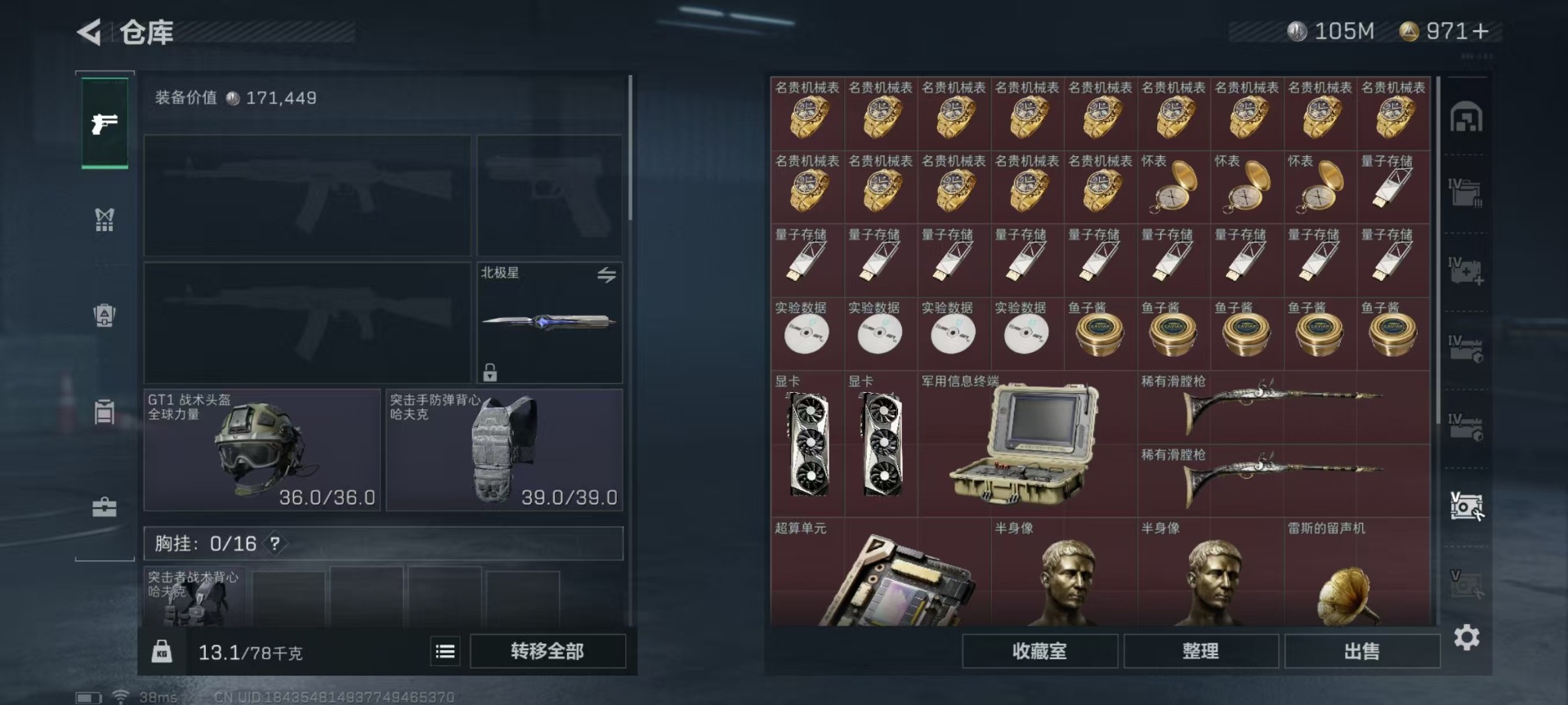 - [11605482]总资产:94.5 2传说枪械 高级安全箱(2×3)9.15号到期 可二次 可修改实名 烽火地带段位:钻石 全面战场段位:无段位 哈夫币:7.189 传说武器皮肤:复合弓-黑-天际线,725双管霰弹枪-送葬人-无题密令 史诗武器皮肤:PKM通用机枪-蝮蛇,PKM通用机枪-荒野求生,SR-3M紧凑突击步枪-荒野求生,M16A4突击步枪-竞赛选手,SV-98狙击步枪-林中猎手,PSG-1射手步枪-无垢,M250通用机枪-囚徒
