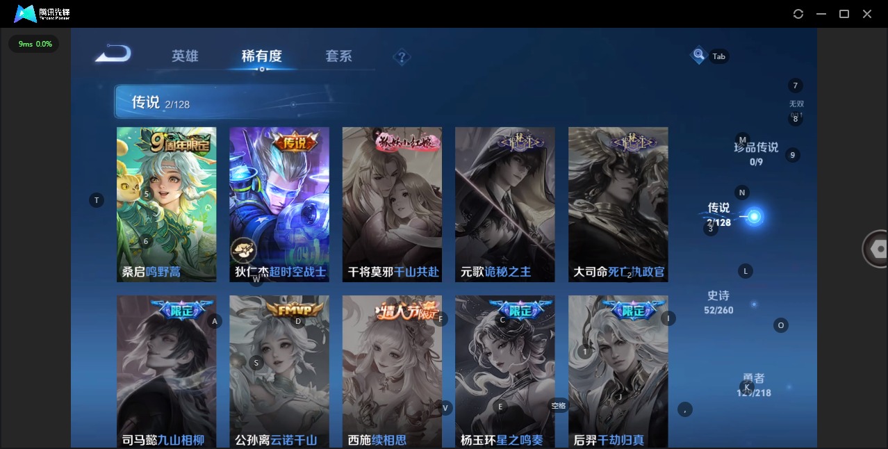 - [11764522]V8 1典藏 14传说 123英雄 244皮肤 可修改实名 优质装备:大秦宣太后,黄金射手座,猫影幻舞,末日机甲-孙尚香(绿蚂蚱),地狱火,淬星耀世,超时空战士-狄仁杰,山海·炽霜斩(李信年限),山海·苍雷引(电光曜子) 珍宝阁皮:蔷薇恋人 限定皮:鸣野蒿,至尊宝,太华(伽罗年限),时雨天司(水龙头),遇见飞天,诗剑行,五谷丰年,青龙志(铠年限),冰锋战神,默契交锋-兰陵王,青春决赛季,冰霜恋舞曲 史诗皮:化蝶舞,龙之律动,茶境仙,遇见神鹿,紫霞仙子,白龙吟,千年之狐,浮梦罗烟,冰冠公主,偶像歌手,晚萤,电玩·爆裂旋风,末日机甲-吕布,猫狗日记-孙策,女仆咖啡,摇滚巨星,水果甜心,星夜王子,心灵骇客,功夫厨神,德古拉伯爵,暗隐猎兽者,幽灵船长,鬼剑武藏,心灵战警,天秀·启明,舞动绿茵,缤纷独角兽,乘风破浪,逐浪之夏,金属风暴,圣诞狂欢,圣诞恋歌,鹰眼统帅,黎明之约,未来纪元-赵云