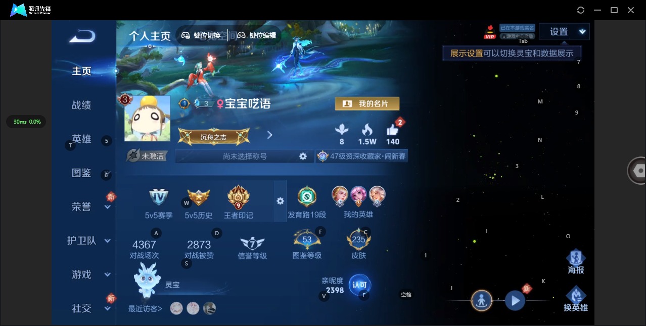 - [11938770]V8 1典藏 19传说 123英雄 304皮肤 可修改实名 优质装备:鸣剑·曳影,冠军飞将,久胜战神,炽阳神光,末日机甲-孙尚香(绿蚂蚱),地狱之眼,时之恋人-刘备(电焊工),无双飞将,山海·炽霜斩(李信年限),山海·苍雷引(电光曜子),画中仙,浮生妄 传说皮:幻光神枪 珍宝阁皮:万物之道,优雅恋人,玩趣恶龙 限定皮:愿照·九州拓(澜年限),愿照·山河定(司空震年限),逐霄战戟,鸣野蒿,至尊宝,傲雪梅枪,时雨天司(水龙头),瑞麟志(木兰年限),高山流水,齐天大圣,五谷丰年,梁祝,李小龙,朱雀志(守约年限),孙行者,寅虎·赤拳(老虎年限),百木心枪,山海·玄木吟(马可年限) 史诗皮:鸭鸭历险记-刘禅,器灵·浮梦炉,绮世丹青,化蝶舞,星界战将,龙之律动,石田雨龙,茶境仙,破空之剑,蒙犽顽岩魄,芈月浮光幕影,海诺心动手记,琥珀纪元伽罗,蔬乡物语(鲁班七号),百相守梦-百里守约,百相守梦-黄忠,织梦人,紫霞仙子,黄金分割率,特工魅影,千年之狐,永昼,江河有灵,魅语,高渐离燃音魔法,蒙恬荣光圣徽,无限星赏官,冰冠公主,偶像歌手,晚萤,电玩·爆裂旋风,末日机甲-吕布,猫狗日记-孙策,猫狗日记-大乔,乱世虎臣,节奏热浪,修罗,女仆咖啡,摇滚巨星,水果甜心,绅士熊喵,星夜王子,功夫厨神,德古拉伯爵,暗隐猎兽者,幽灵船长,鬼剑武藏,暗渊魔法,心灵战警,天秀·启明,舞动绿茵,纤云弄巧,缤纷独角兽,乘风破浪,逐浪之夏,龙鼓争鸣,水晶猎龙者,曙光守护者,热力回旋,唤灵魅影,金属风暴,圣诞狂欢,圣诞恋歌,鹰眼统帅,魅力维加斯,赏金猎手,奇遇舞章,无心,未来纪元-赵云