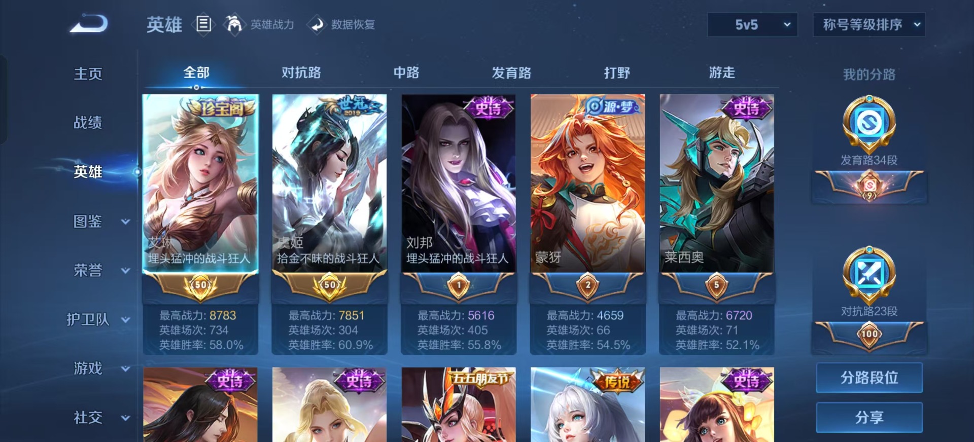 - [11883287]V7 6传说 123英雄 223皮肤 可修改实名 优质装备:久胜战神,云霓雀翎,胖达荣荣,超时空战士-狄仁杰 珍宝阁皮:优雅恋人,蔷薇恋人 限定皮:逐霄战戟,鸣野蒿,山海·碧波行(瑶年限),高山流水,怒海麟威,五谷丰年,逐梦之音,匿光启智者,时之奇旅-妲己,山海·玄木吟(马可年限) 史诗皮:化蝶舞,破空之剑,战舞者,琥珀纪元伽罗,决胜骁骑,蔬乡物语(鲁班七号),百相守梦-百里守约,百相守梦-黄忠,紫霞仙子,黄金分割率,特工魅影,千年之狐,江河有灵,匿光侦查者,雪夜绮愿(周瑜),百解令(蒙犽),高渐离燃音魔法,无限星赏官,偶像歌手,白蛇,电玩·爆裂旋风,暗夜猫娘,龙骑士(小龙虾),末日机甲-吕布,猫狗日记-孙策,猫狗日记-大乔,时之恋人-孙尚香,乱世虎臣,节奏热浪,女仆咖啡,水果甜心,星夜王子,心灵骇客,功夫厨神,暗隐猎兽者,幽灵船长,鬼剑武藏,心灵战警,天秀·启明,舞动绿茵,地狱岩魂,纤云弄巧,拒霜思,缤纷独角兽,乘风破浪,水晶猎龙者,曙光守护者,箭羽风息,金属风暴,圣诞狂欢,鹰眼统帅,暗夜贵公子,魅力维加斯,无心,未来纪元-赵云